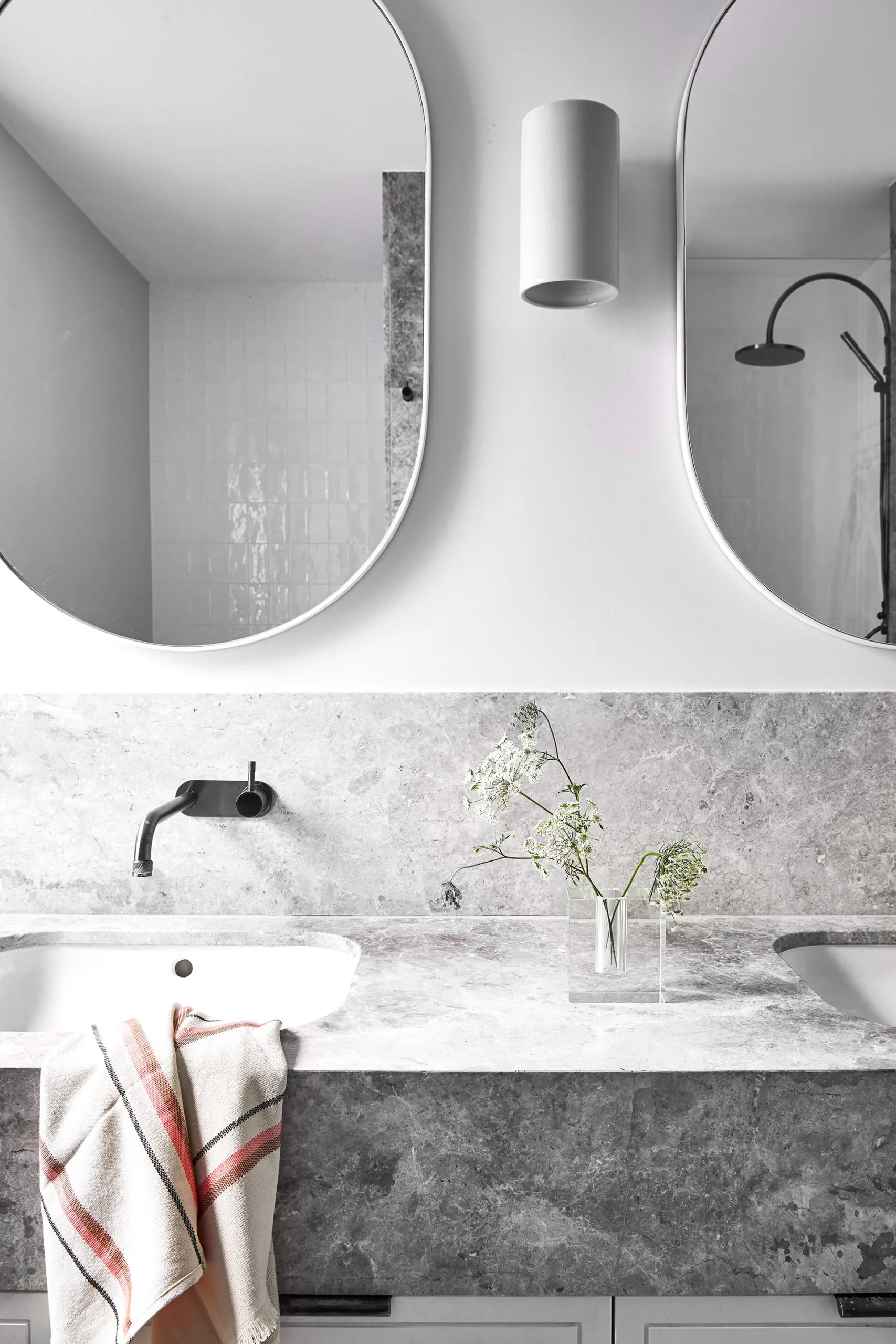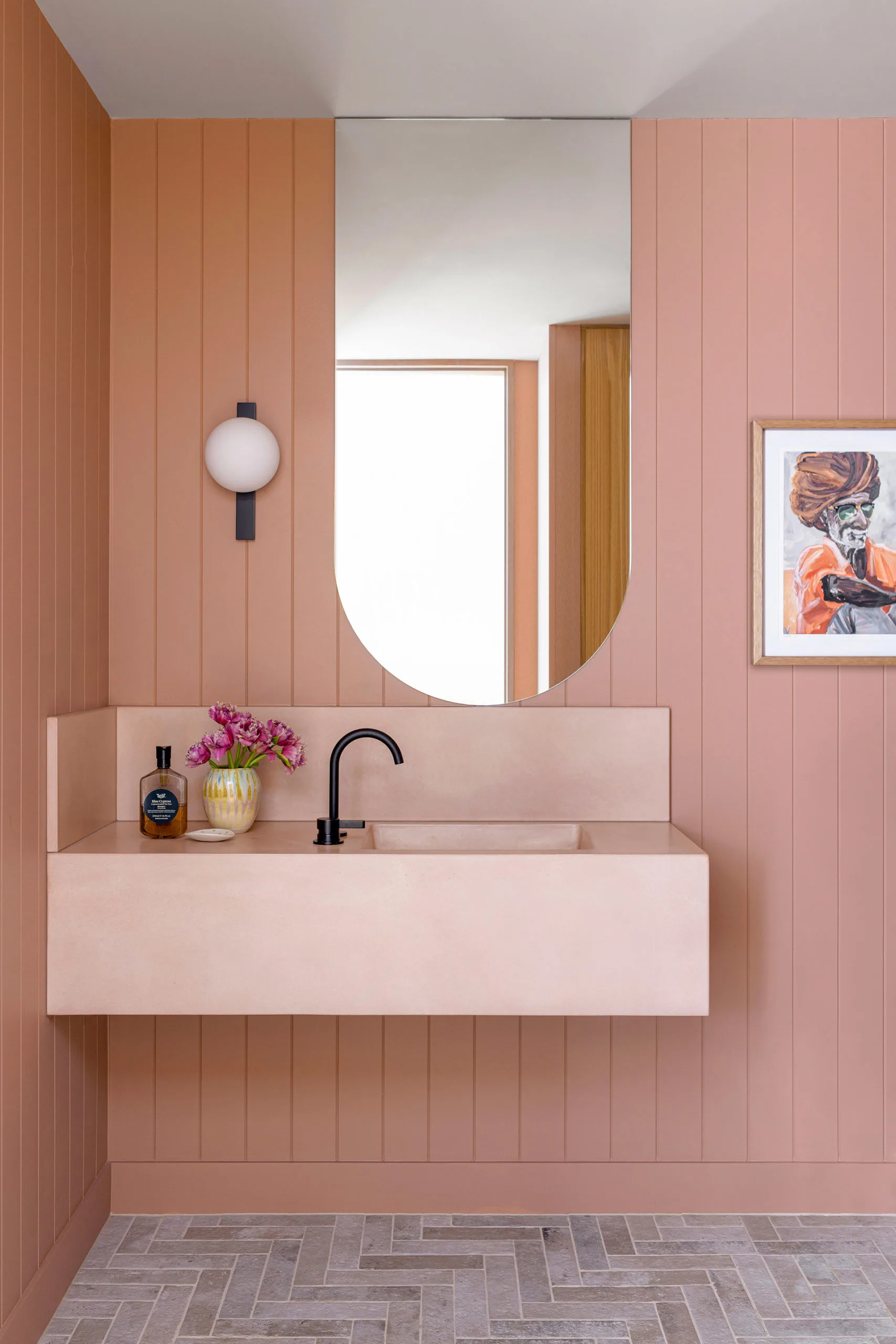 If you don’t currently have wall sconces on either side of your mirror, there is a little hack that doesn’t require an electrician to run any cabling. Buy your wall sconces of choice, screw them to the wall, then search for and buy ‘USB rechargeable light bulbs’. They screw in just like any ordinary bulb, but are battery powered – just make sure you buy the ones that come with a remote so you can control them.