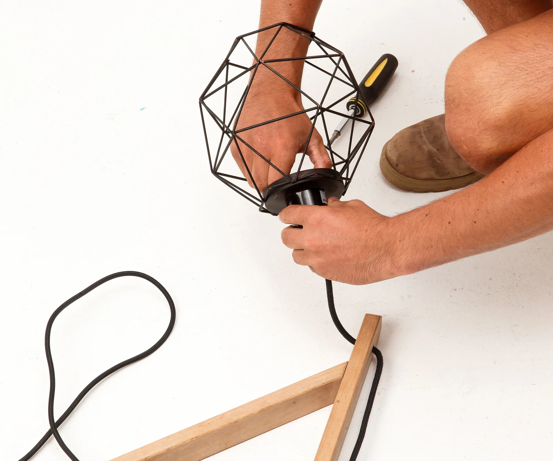 Illuminate your bedroom or living room with a swish industrial cage light made by your own fair hands! Ready in 8 simple steps and requiring just a handful of materials and tools, it’s easier than you think.
