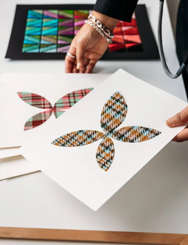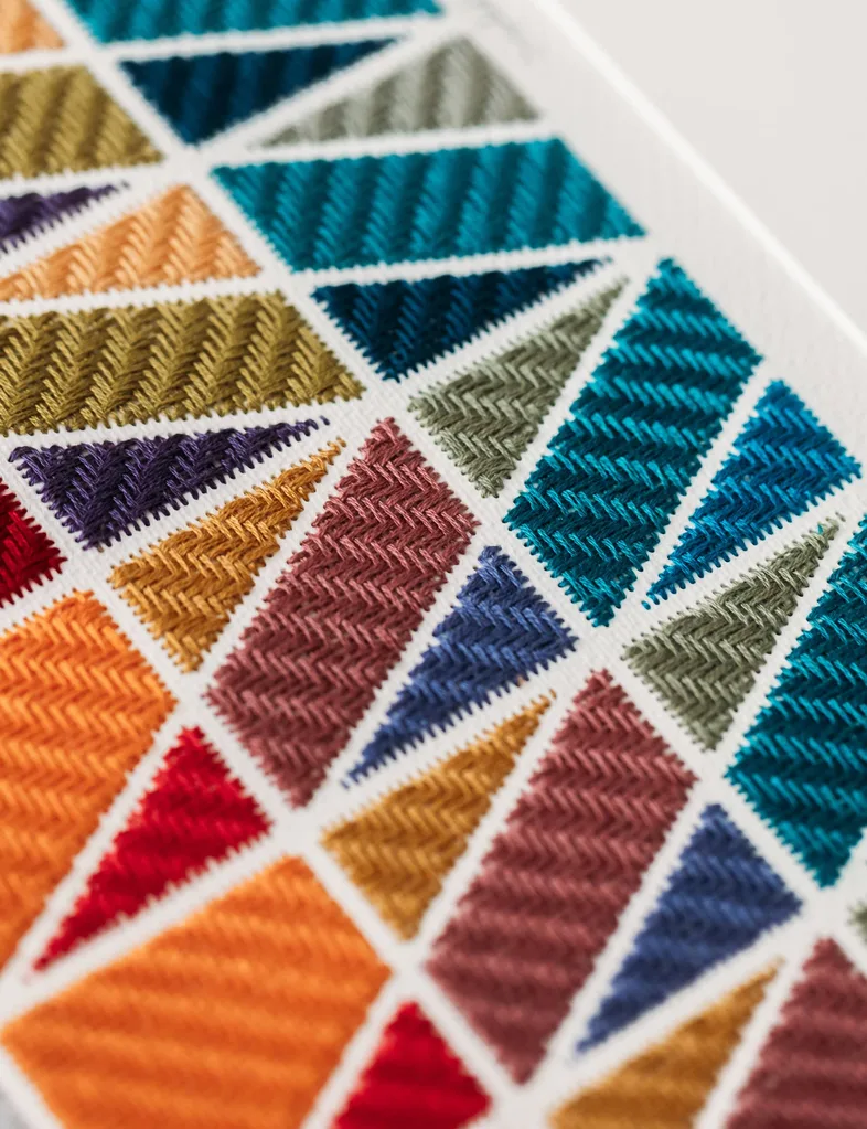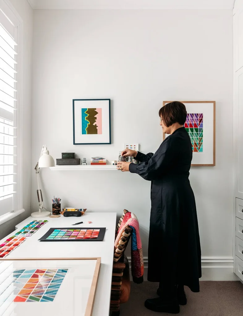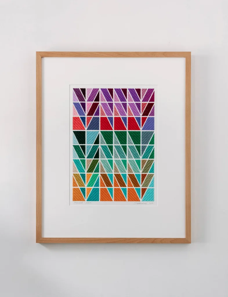 Colour bias can keep us drawn to the same combinations, so I produced a 120-piece work entitled Plaid Pua based on 120 three-colour combinations (developed by Japanese artist Sanzo Wada) that helped challenge this to an extent. I would say that I am intentional in my choice of colour depending on what feeling I’d like to convey in the works.