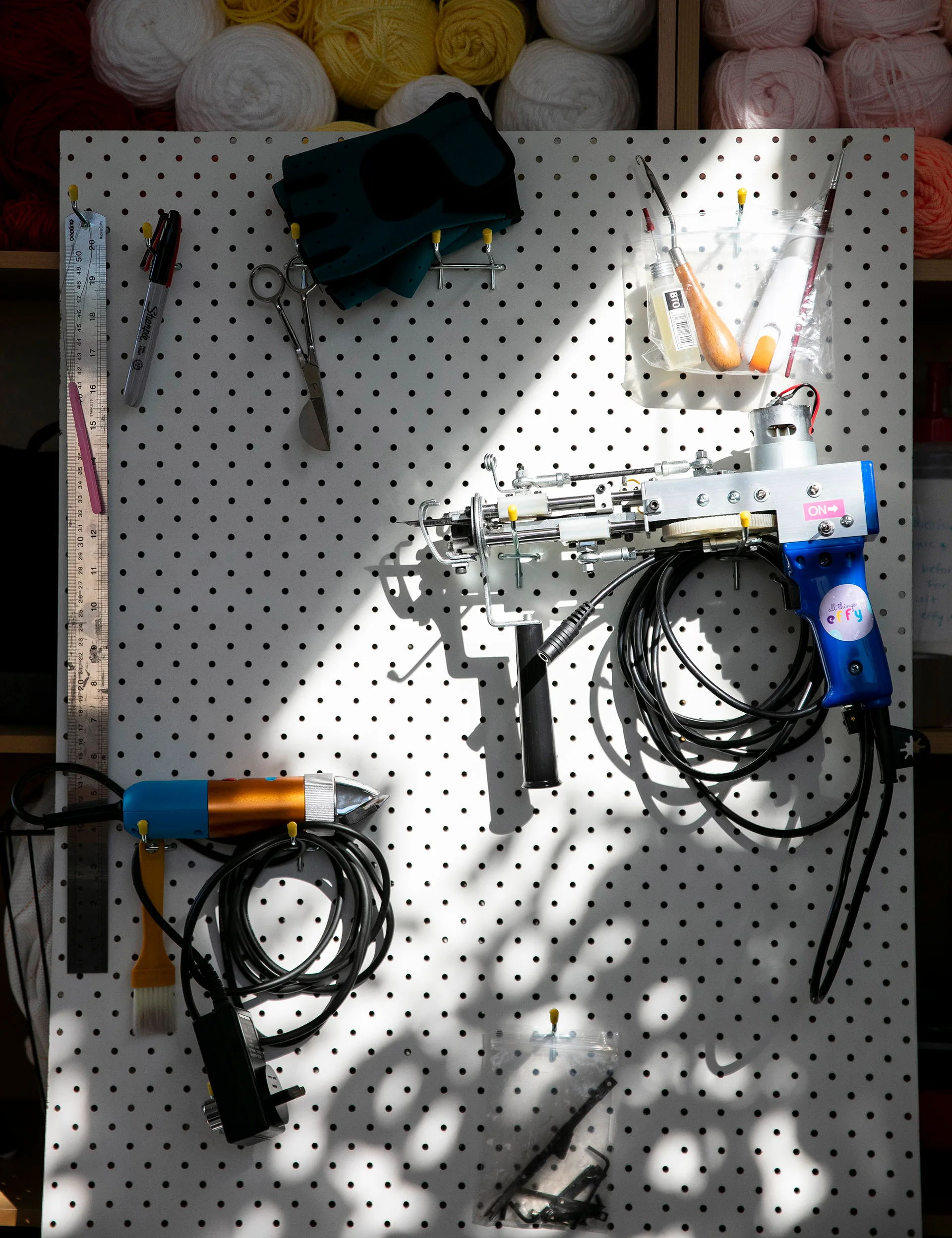 In 2021 I found myself overwhelmed, anxious and burnt out after an intense couple of years and ended up stopping work to recover. A few months into that time, I felt drawn to try something creative. Rug tufting is a very physical process that appealed to me – it’s easy for me to get stuck in my head, so I chose an art form that might help me connect with my body. I’ve discovered it’s a very mindful activity too, which helps with anxiety.