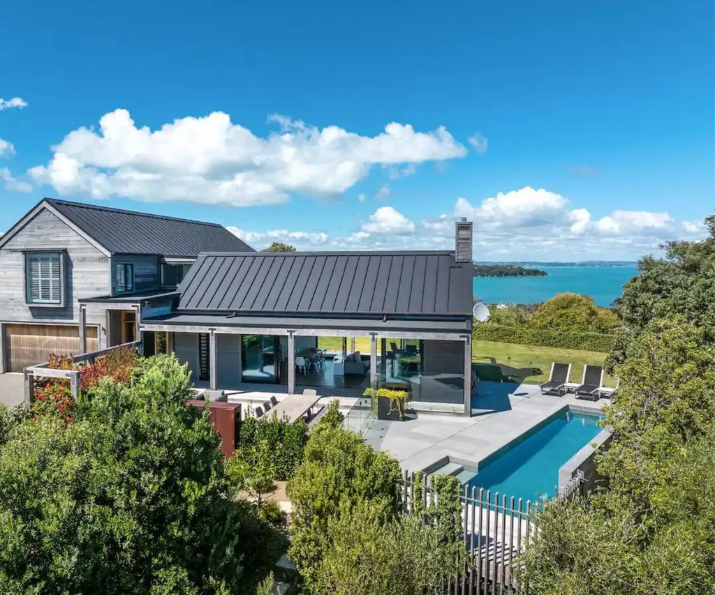 Jump on a ferry in downtown Auckland and make your way across to this family home on Waiheke Island. Once you’re there you’ll be reluctant to leave! This large family home sleeps eight, making it perfect for a dual-family escape, especially with Little Oneroa beach and playground less than a 10-minute walk away. Let the kids exhaust their endless energy swimming in the pool, playing on the large lawn, or watching movies in the media room, while you enjoy a few island-made red wines next to the outdoor fire.