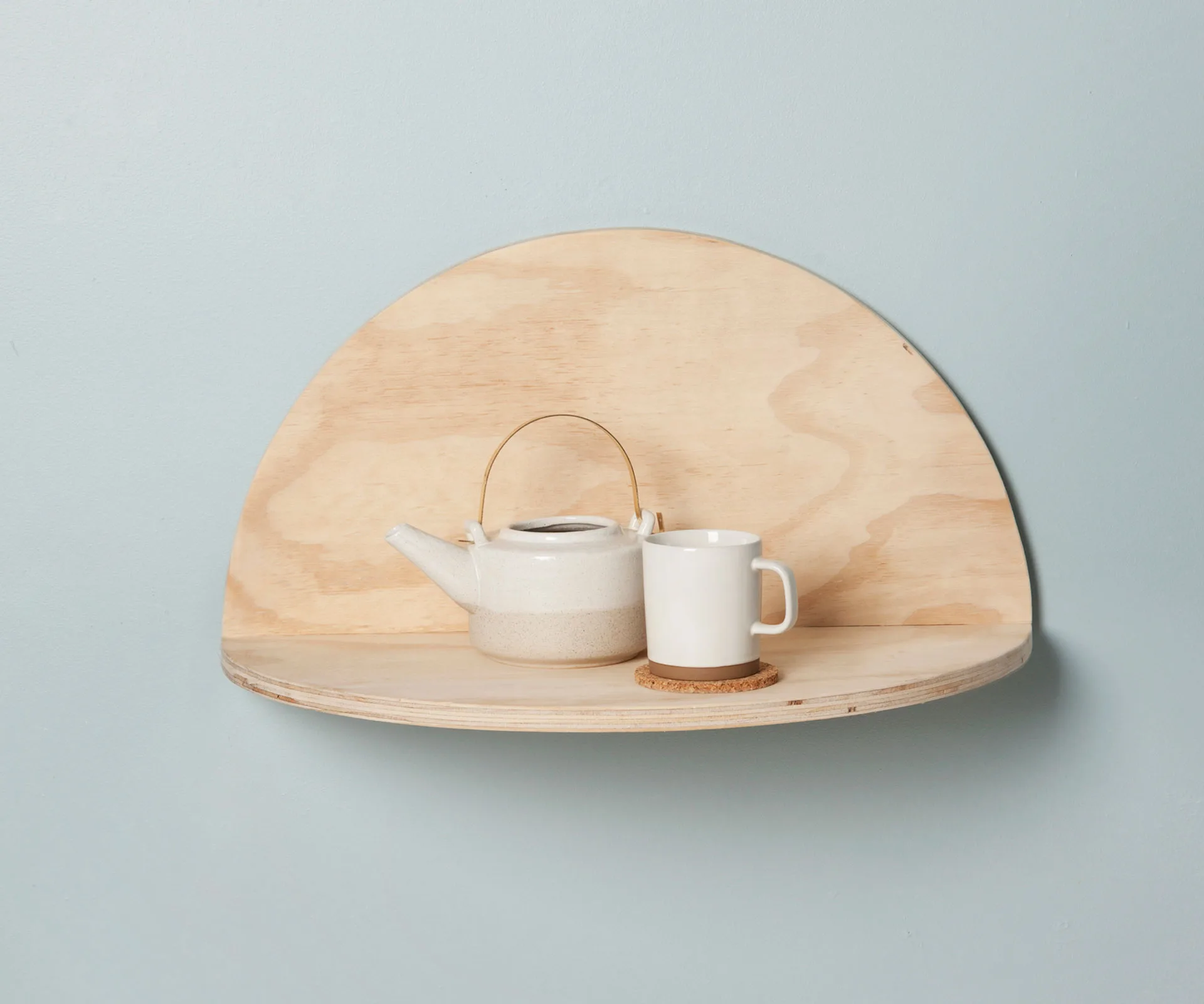 Lay one half-circle flat and stand the other on top of it to form a shelf. Glue and screw the 2 pieces together with 32mm screws. Sand off edges.