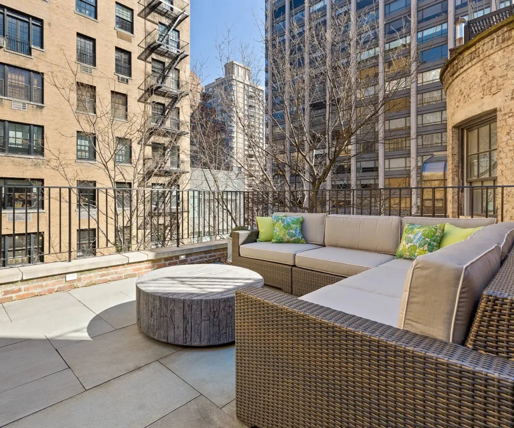 The home caters to al fresco dining with a landscaped garden featuring custom latticework, two charming terraces and a Juliet balcony. This outdoor space is truly a luxury in New York City.