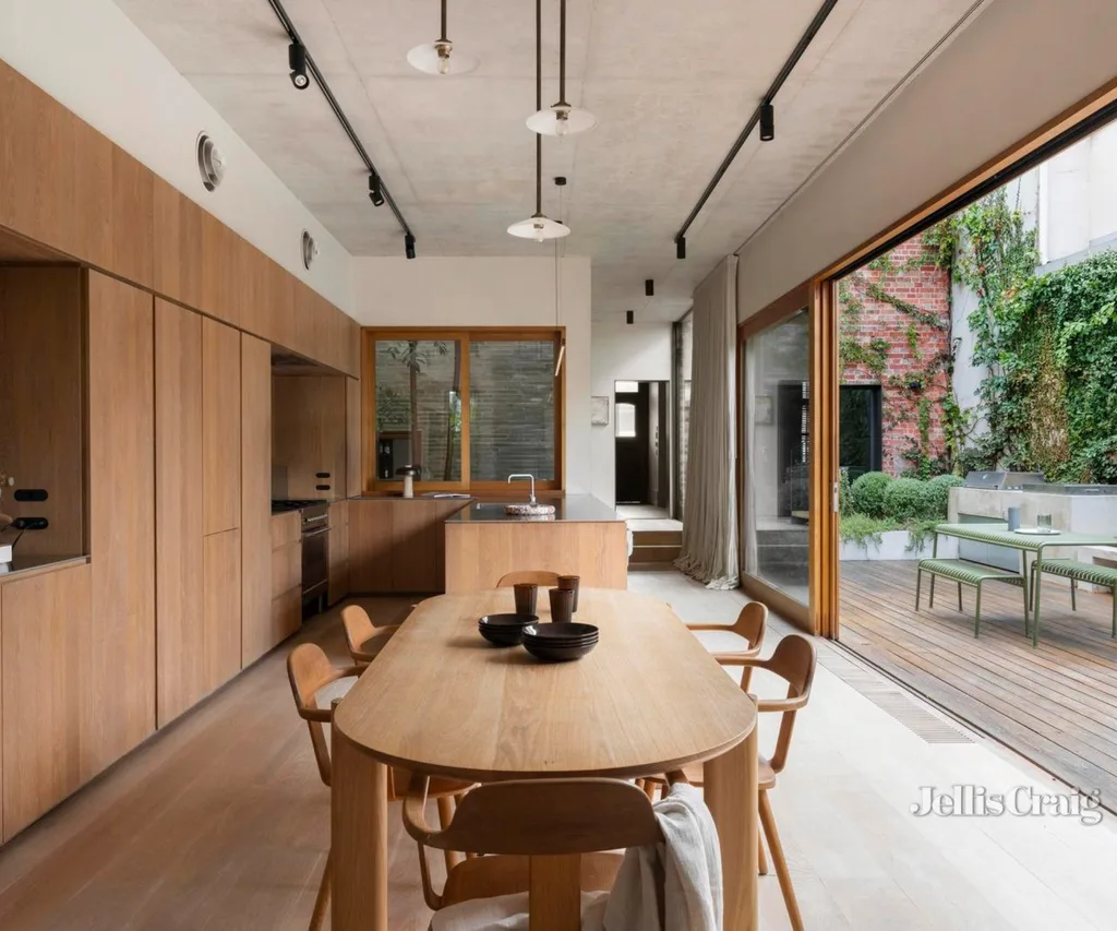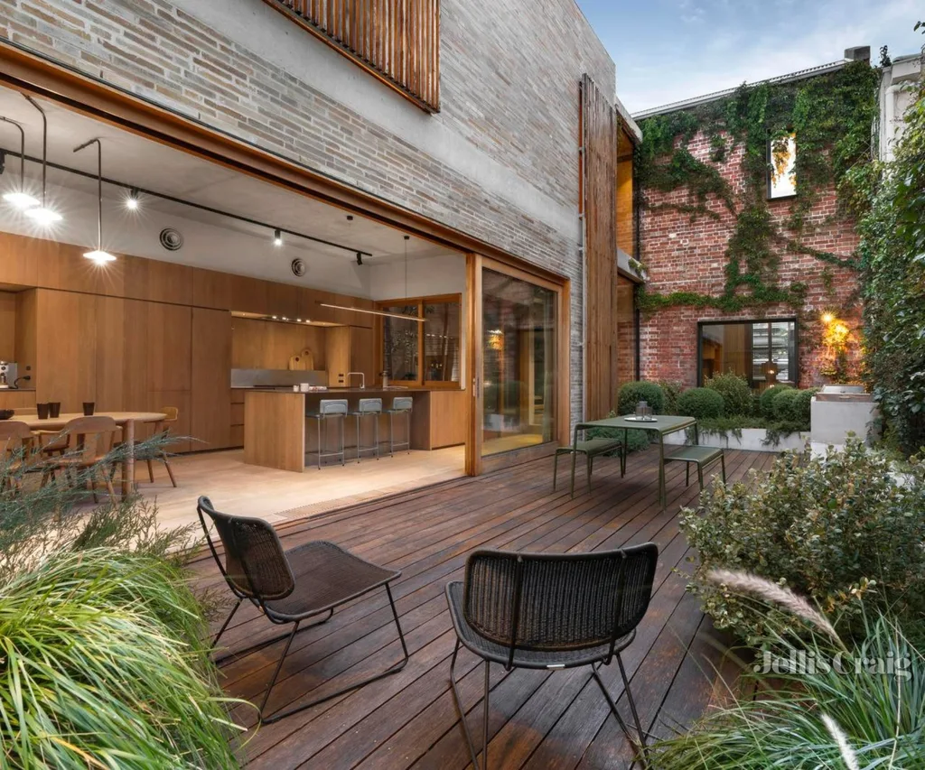 The slick extension combines rich, warming oak and luxe, cosy furnishings alongside industrial materials, including exposed brick and concrete, creating an urban oasis befitting its inner-city locale. “The renovation took a very long time,” Bree told Domain. “But the result is an incredibly grand house. It was definitely worth it.”