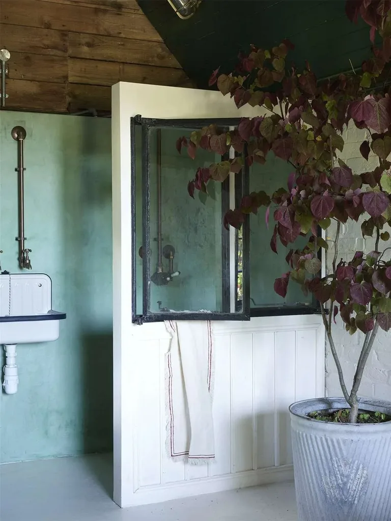 The first floor, reached via an original timber staircase, contains three bedrooms and a bathroom. The main suite is a dream retreat, complete with artistic personal flourishes, like Maison C wallpaper (described by Miller as featuring “dancing witches”). Double French doors open up to a private balcony, which still offers enough privacy to soag in the room’s free standing tub while enjoying the fresh, country air.