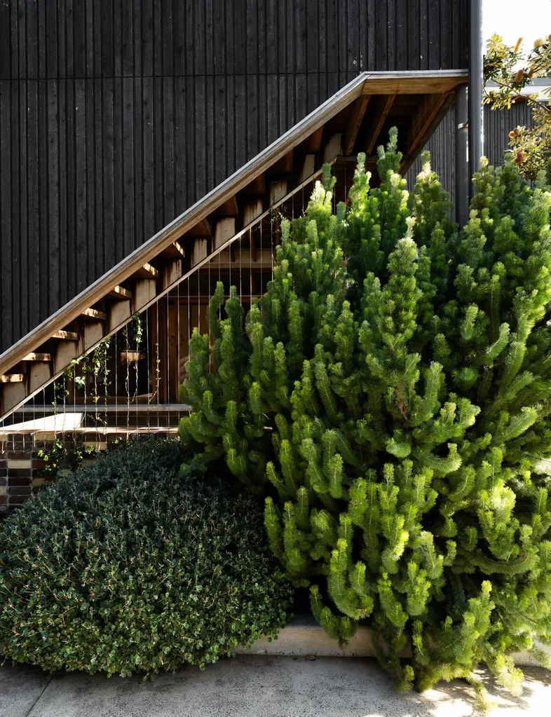 “The aim was to create a sense of entry as soon as you come up the drive, as well as to enhance the sense of greenery when you’re inside looking out,” says landscape designer James Headland about the engaging, all-purpose space that acts as a buffer between the four-bedroom home and its nearby neighbours.