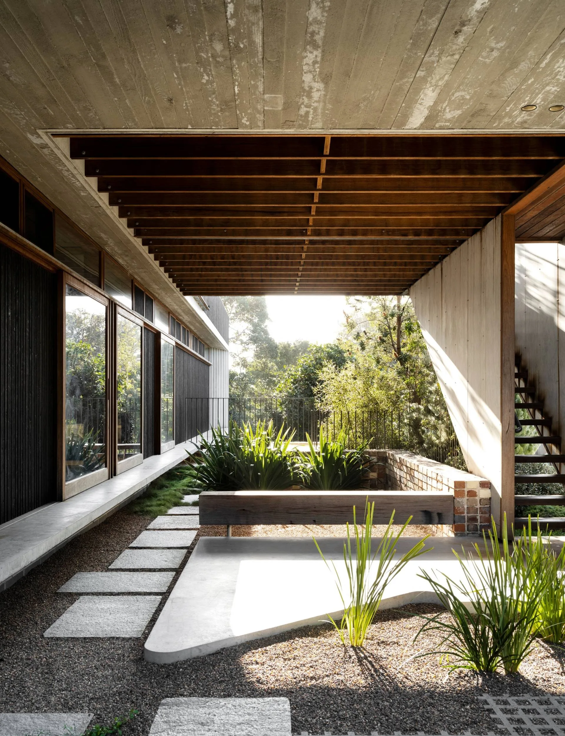 “It’s a nice way to resolve what is essentially a dead space,” says James of the area, which is accessed by the downstairs bedrooms and provides shelter from the sun and wind.