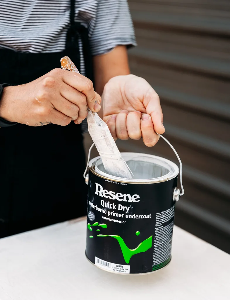 Because my unit was already painted, I didn’t have to prime the entire unit, however, I did spot prime any bare timber with Resene Quick Dry waterborne primer as well as filled in any spots with Resene EzyFill Quick. Allow to dry.