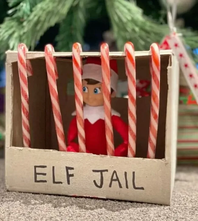 These days, the elves are far too mischievous to sit on the shelf. Throughout December, hilarious elf ideas include hanging Elfie on the Christmas tree, having him nibble on candy canes, staging marshmallow fights with other toys, and bathing him in cereal.