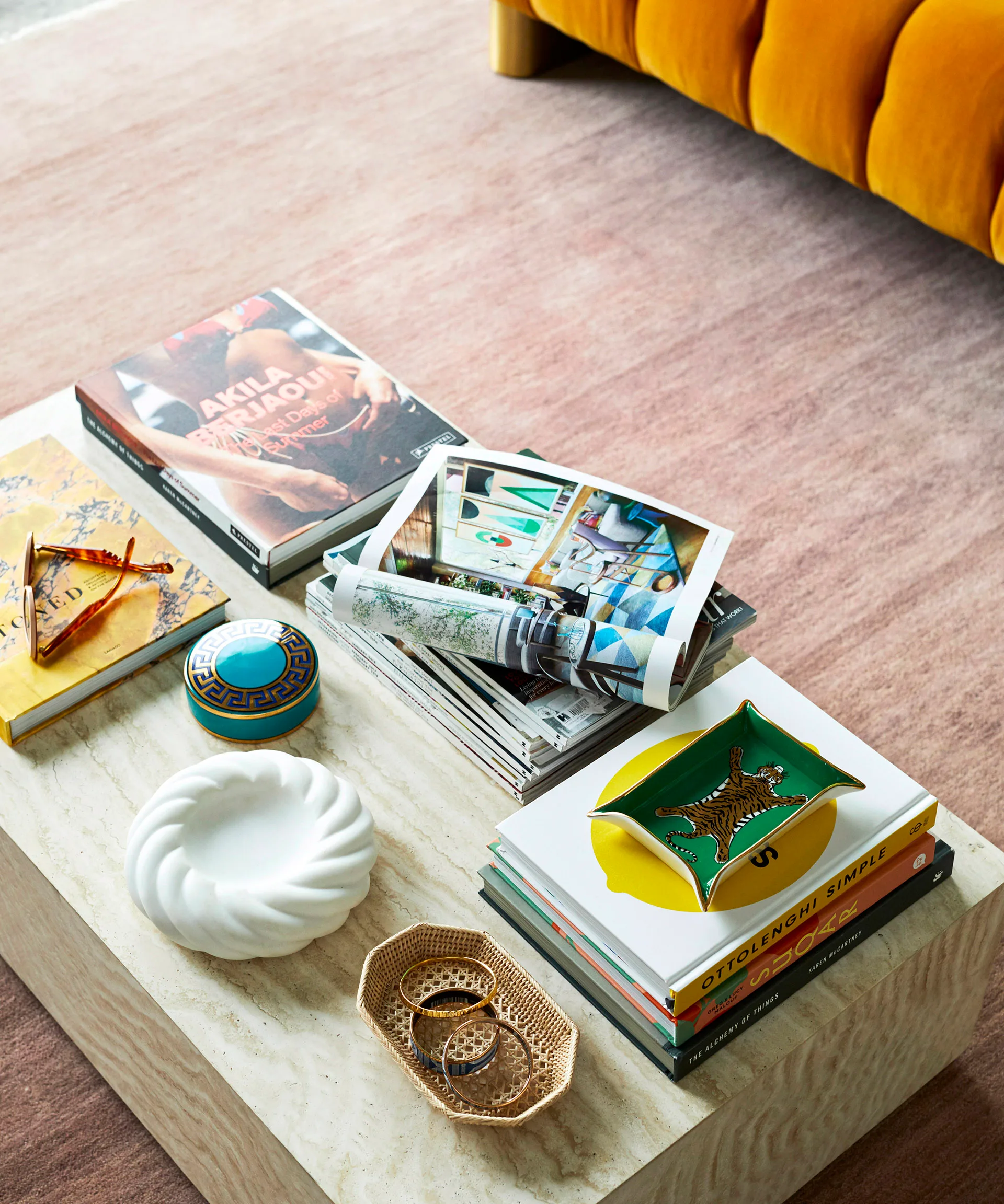 Create a full-scale library, or even scatter piles of good reads around the home. Colour coding is optional