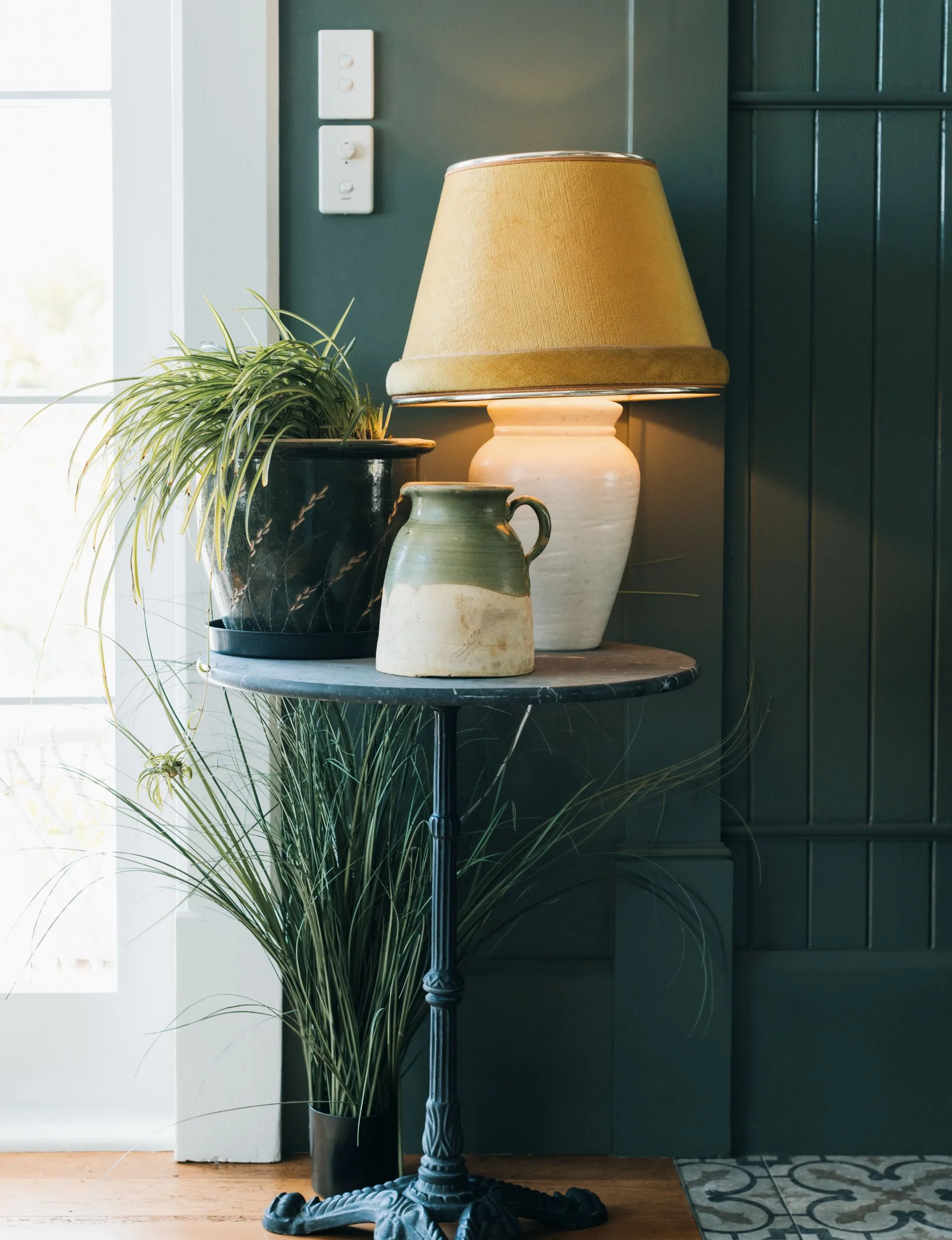 Resene Zylone Sheen in Resene Mangrove, a sophisticated muddy green, was the powerful statement colour they decided to apply to their walls. For the kitchen cabinetry, they went with Resene Double Mangrove. They used Resene Mangrove on the skirting. Their contrasting neutral, which pops against the painted skirting, is Resene Zylone Low Sheen in Resene Quarter White Pointer, a sober, greyed white. “Resene Mangrove gives the rooms a rich, moody depth and Resene Quarter White Pointer lightly softens and complements,” says Carol.