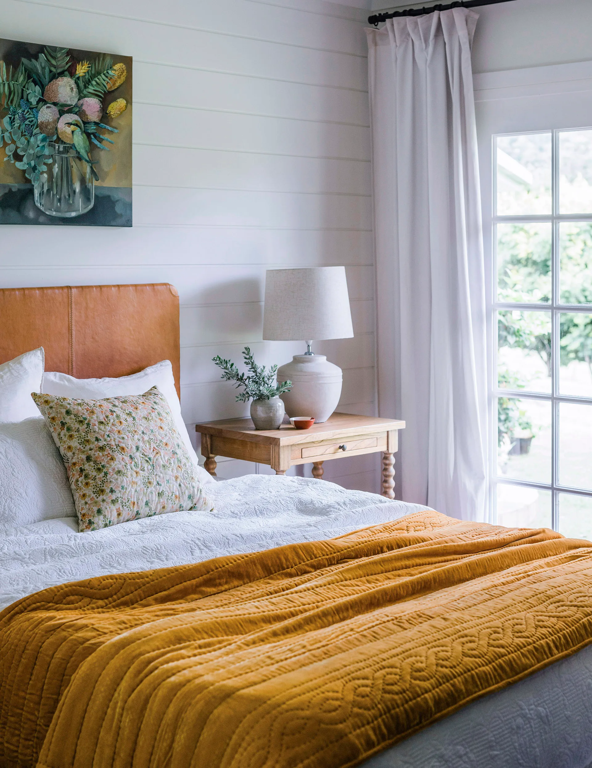 The beauty of bedheads is that they bring an extra dimension to the bedroom, transforming a plain wall into a visual statement. Fluted forms or sumptuous curves in a print really pack a punch. Or bring in a simple, serene linen that won’t dominate but gently steps your bedroom up a gear. Not only will this material must-have anchor your relaxation space, it acts as a focal point to draw the eye in and works as a true expression of you.