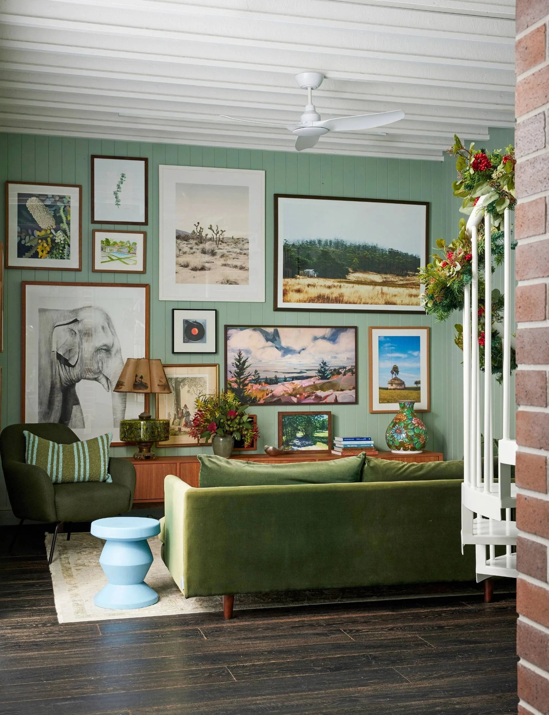 “Many galleries choose white because it creates a neutral backdrop, which lets the artwork take centre stage without distractions,” says Anna. But at home, art can play very nicely with coloured walls. “Rich colours or muted tones can work beautifully as a backdrop to your art. They can enhance the mood of a piece or complement your overall decor. Even a soft, subtle shade can add warmth and depth without overshadowing the art.”