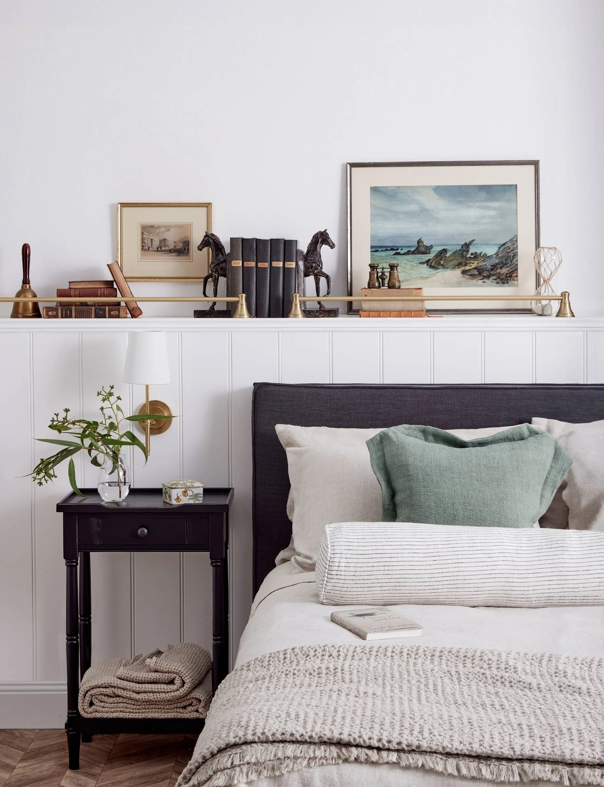 One big artwork is simple, but hanging a cluster of small pieces can throw people into a spin. “When it comes to displaying multiple artworks, there’s no one-size-fits-all rule; so much depends on your space and style,” says Anna. “If you love clean lines and simplicity, a linear arrangement could be your thing. It brings structure and clarity to a space.”