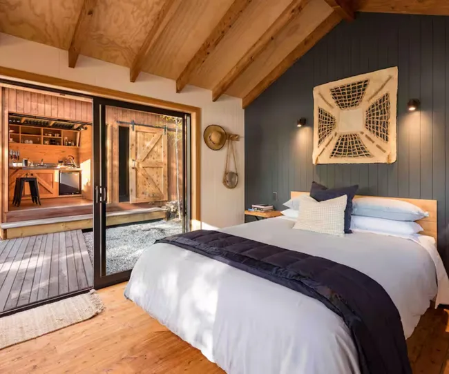 Just 10 minutes outside Russell, in the Bay of Islands, lies this group of glamping hotspots. Popular among wine enthusiasts, the Syrah Shack sits between vines and native bush, making it the ideal spot for escaping the everyday. With a cellar door and eatery just a kilometre from the accommodation, here you can wine and dine until your heart’s content, and end the evening relaxing in the outdoor bath.