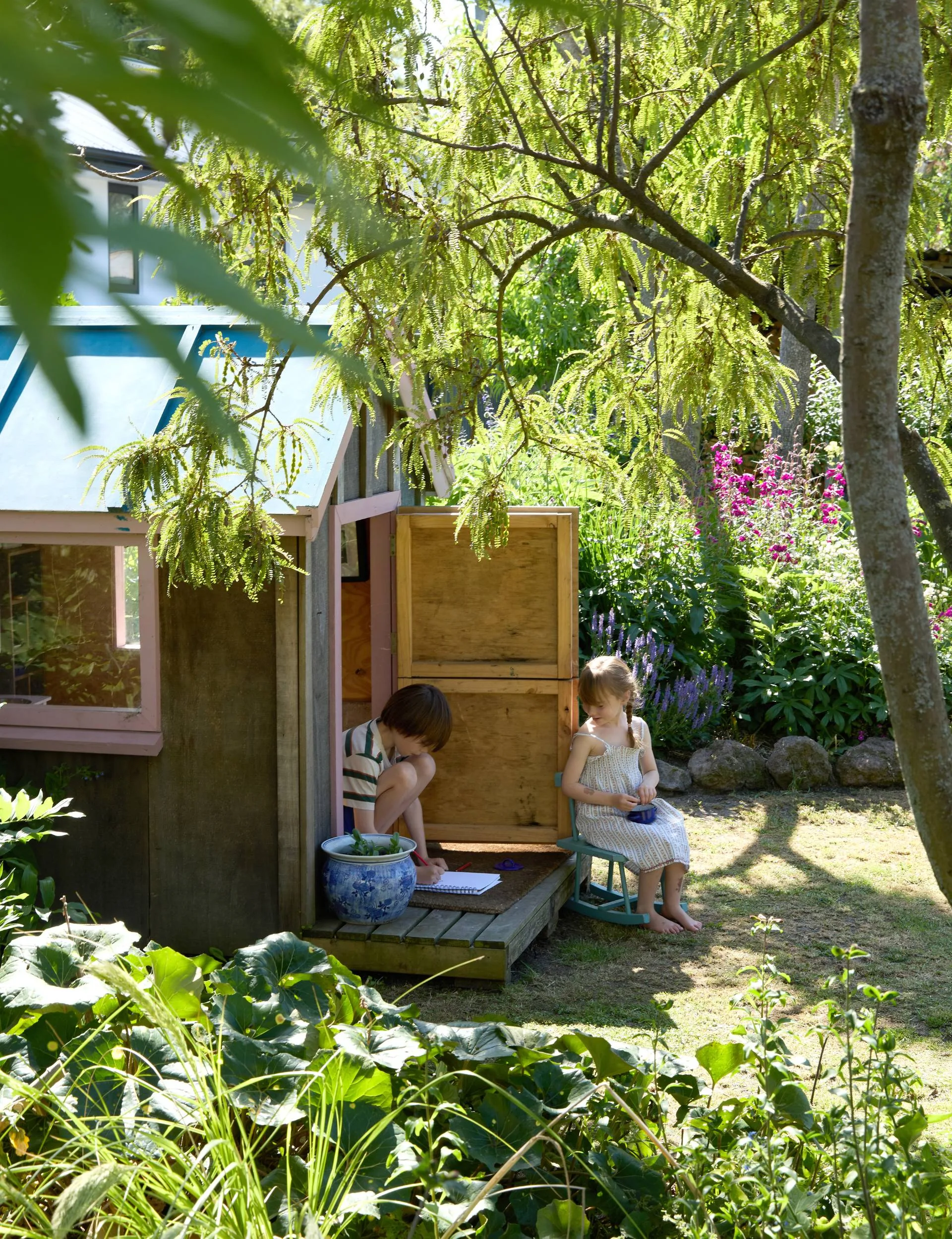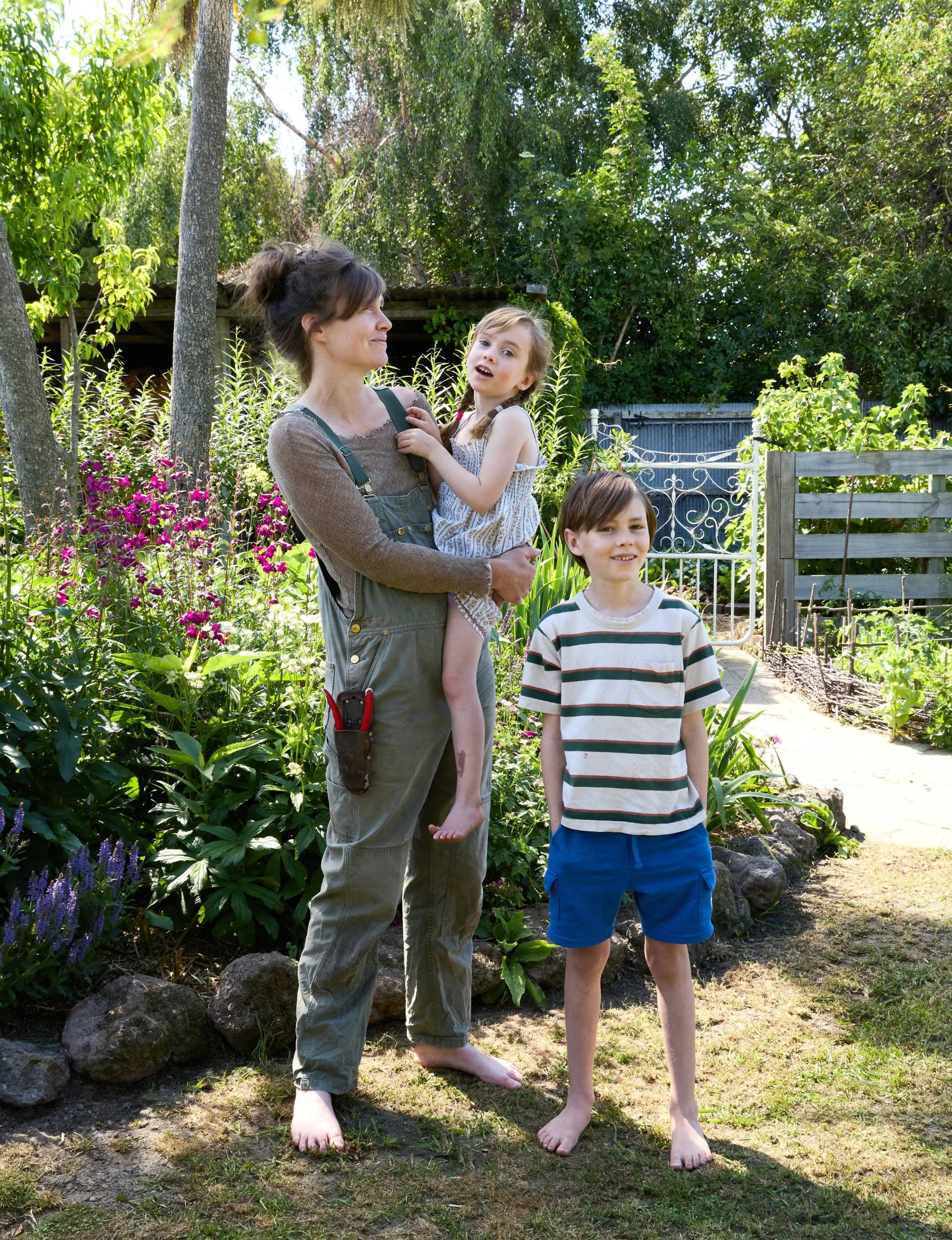 Nell has planted citrus trees and New Zealand cranberries, which her daughter Ottilie and son Roland enjoy eating. The children also have their own garden patches, which were started with great enthusiasm and contained cucumber, tomatoes and a cabbage. (Credit: Sarah Rowlands.)