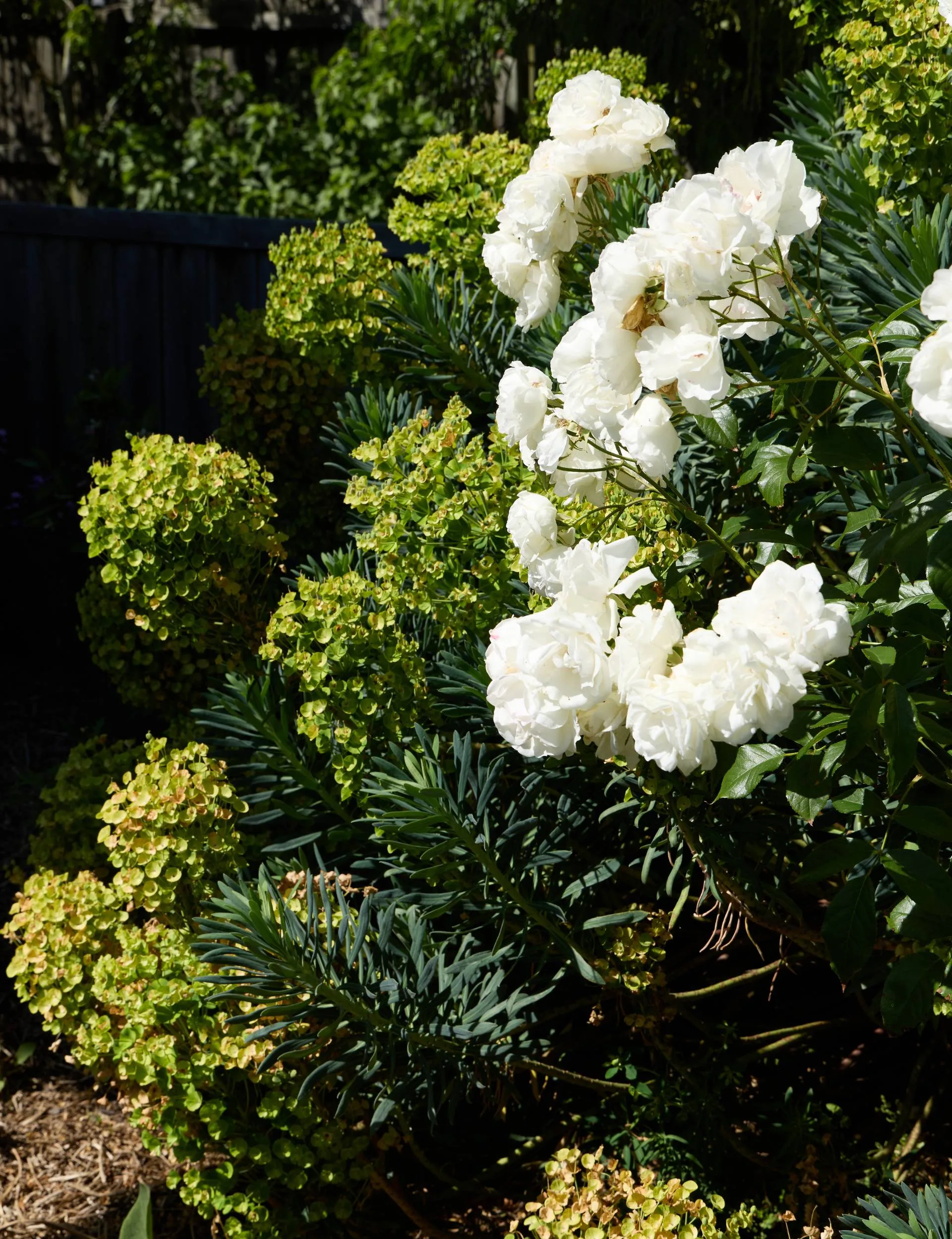 Getting rid of most of the Euphorbia wulfenii, apart from one plant, was made because the stems break easily and the milky sap is toxic and an irritant, particularly if it gets in your eye.