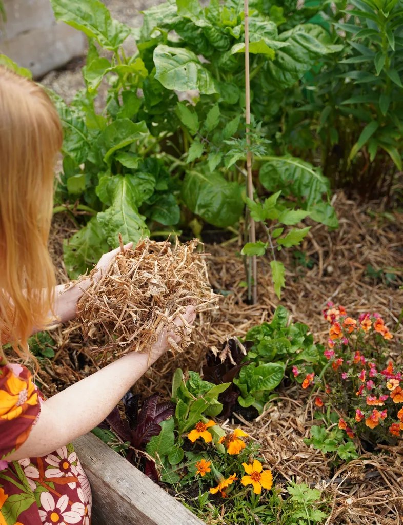 One of the ongoing expenses with raised beds is topping up the soil, which settles over time, so I add fresh mix and compost every year. I also mix in sheep pellets in spring and autumn to add nutrients to the soil. Raised beds are essentially large pots and dry out more quickly than in-ground beds, so I always add a thick layer of pea straw as a mulch in spring and summer to lock moisture in.