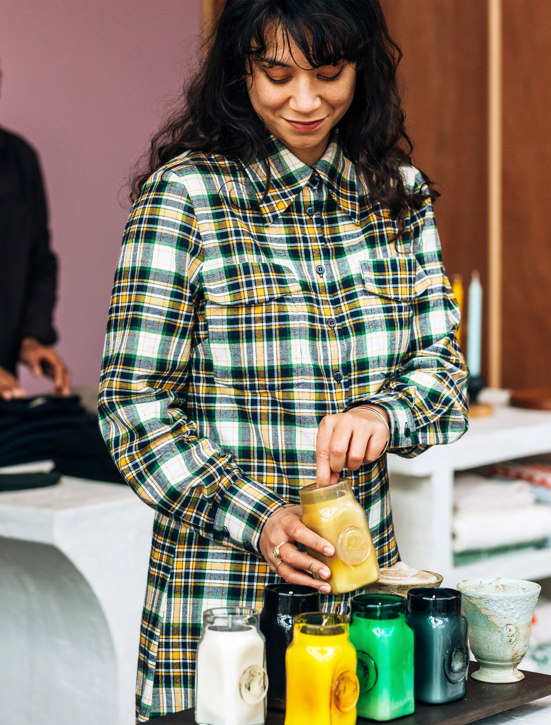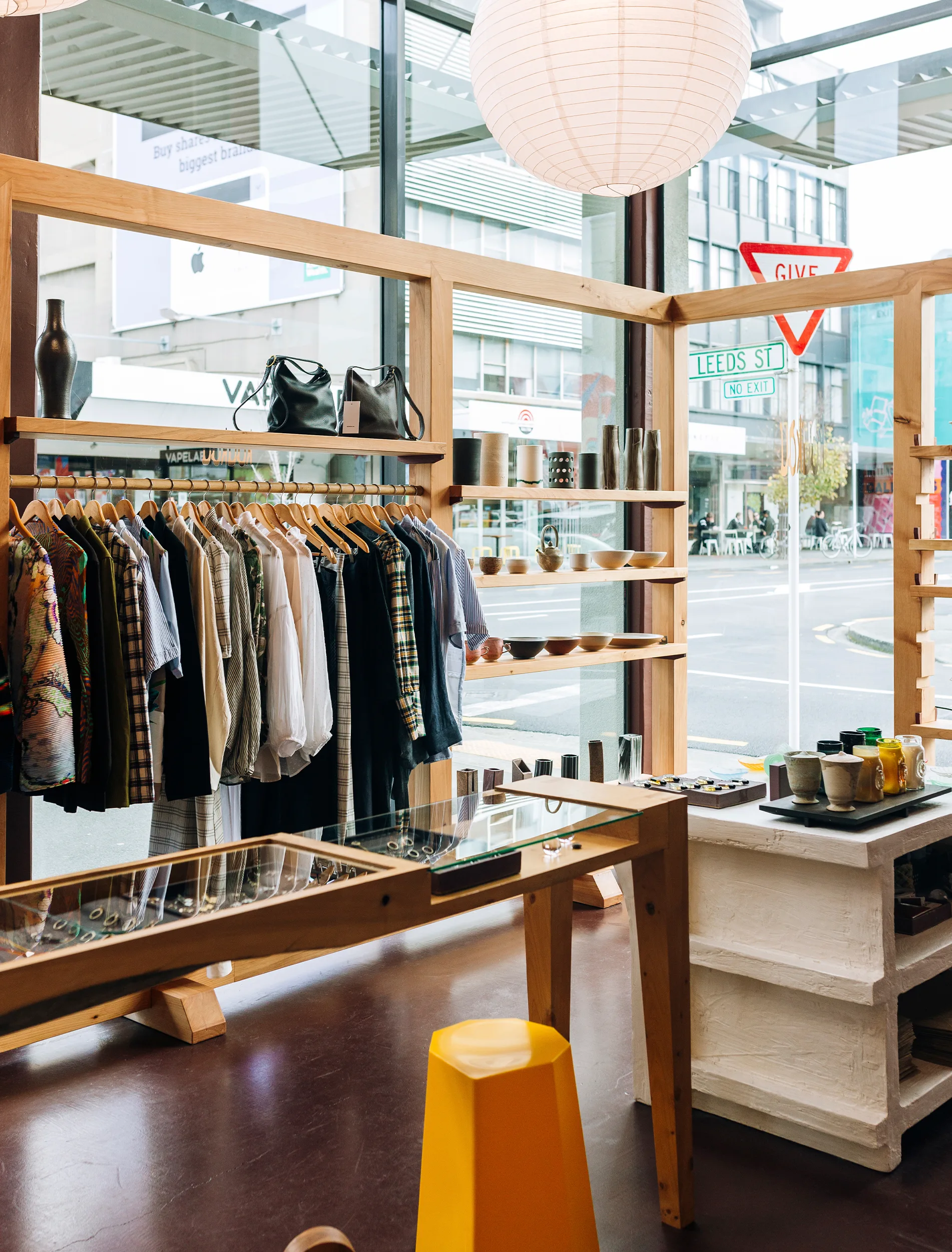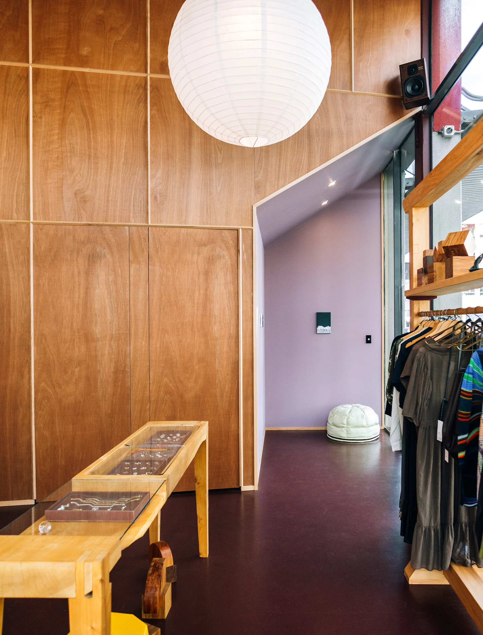 What’s your favourite part of the space and why? The wooden shelving structure that runs along the windows. It was built by our friend Tom Martin, which makes it even more special. We designed it with the idea of privacy in mind and took inspiration from a traditional Japanese joinery technique called kumiki. It’s made from macrocarpa with details of purple heart. There are so many beautiful moments in the structure, each join and angle has been crafted with so much care. It’s the perfect piece to frame the space.