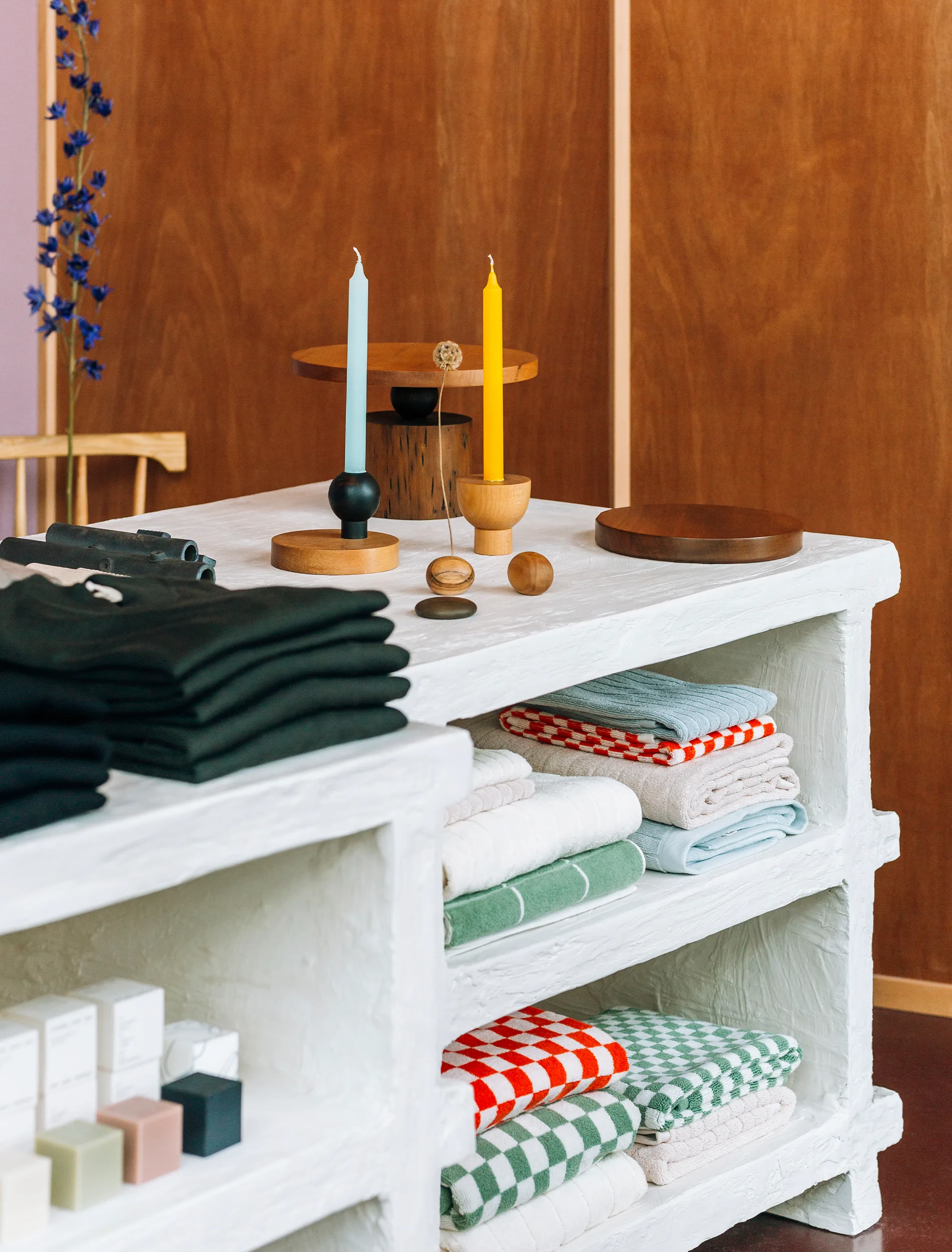 Talk us through the name of the store. Kaukau in te reo translates ‘to swim’ or ‘to bathe’. The ‘au’ is pronounced as a ‘ow’, so it rhymes with flow. With Kaukau we were drawn to the fluidity of the moana, the idea of things ever-changing and moving – one body of water being the element that binds us all together. With this in mind we designed the store to be modular, we wanted the space to have the capacity to adapt and change and to be able to react with the objects in it.