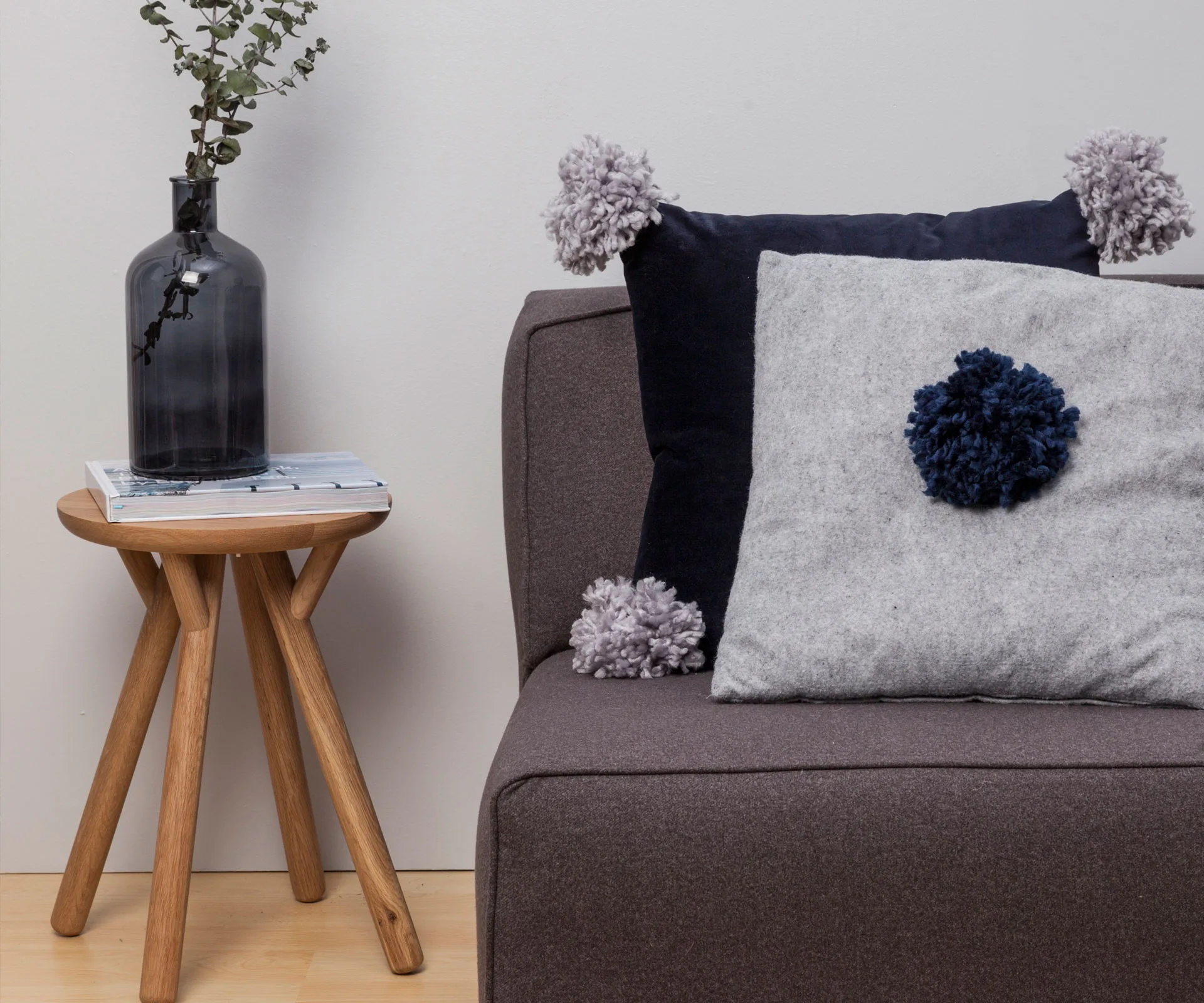 If you have some plain cushions in your home and want a bit of a change, consider adding a nice big pom pom to the front or on each of the corners. Simply attach the pom poms to your cushion with a needle and thread.