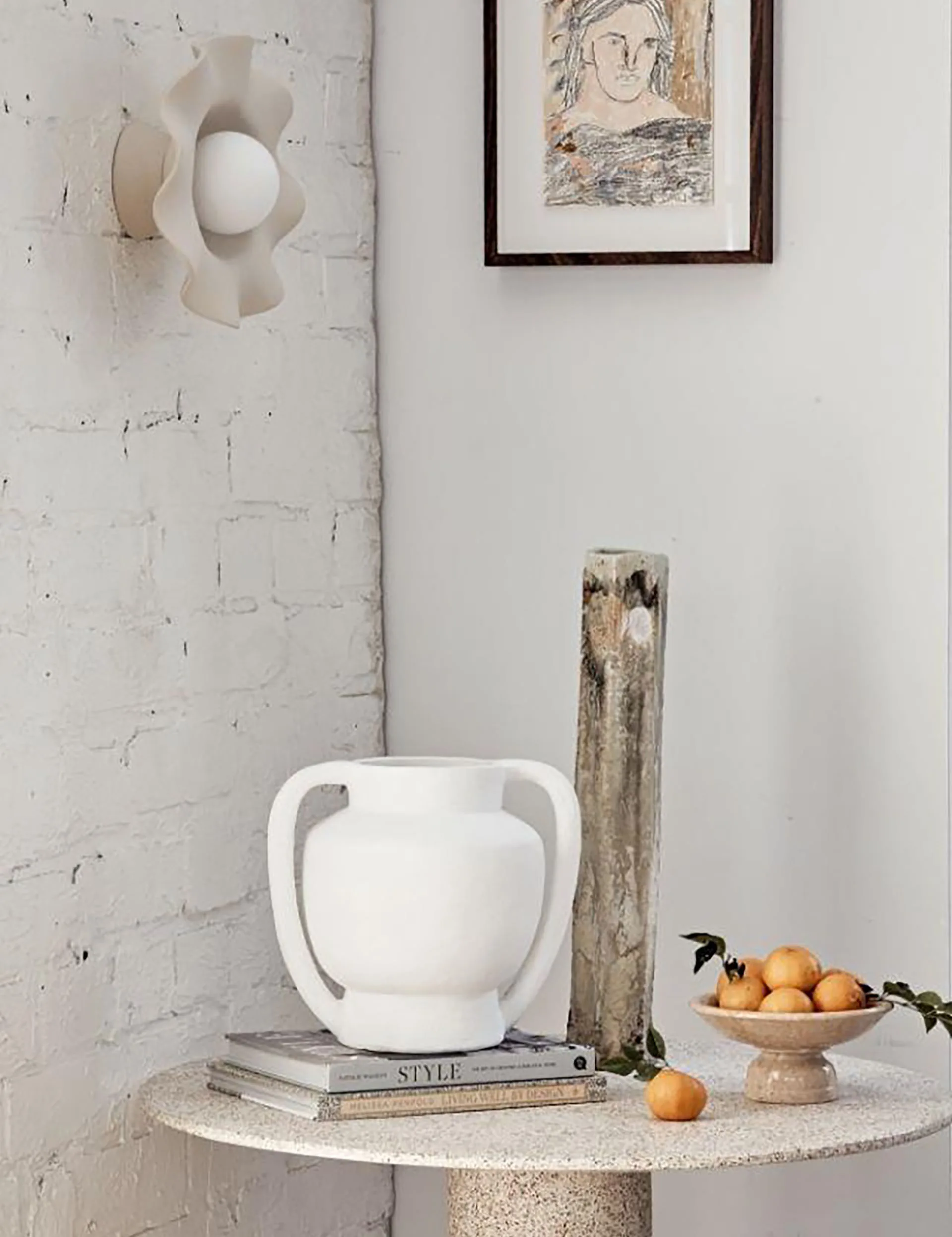 Move your art: Take one or two of your small artworks off the wall and position them in a vignette with a vase, candle or other homewares on a console or shelf.