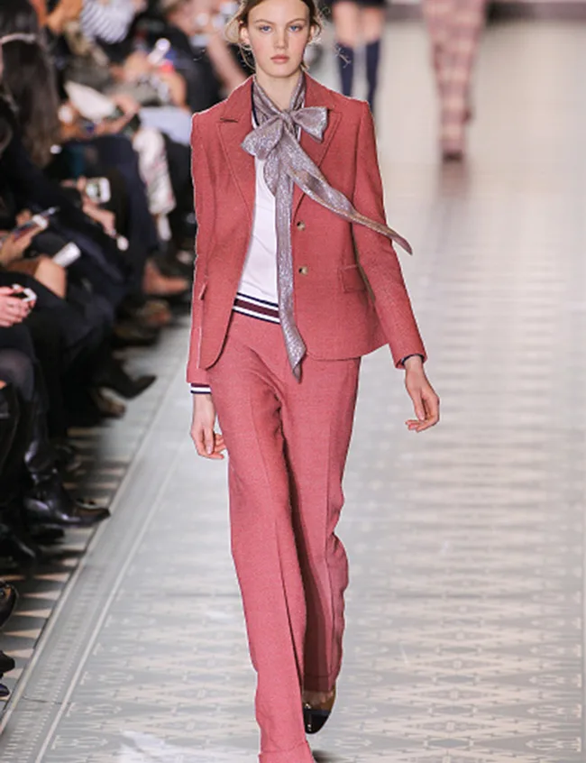 Dusky pink is having a fashion moment, layer up several different tones and team with softest grey.