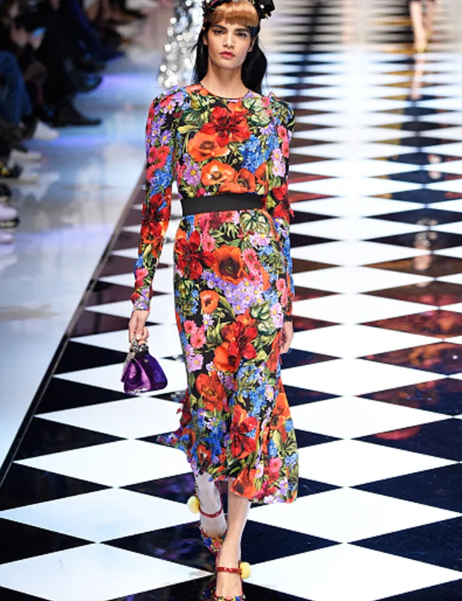 Floral prints featured heavily in the Dolce & Gabbana Fall Winter 16/17 runway show.
