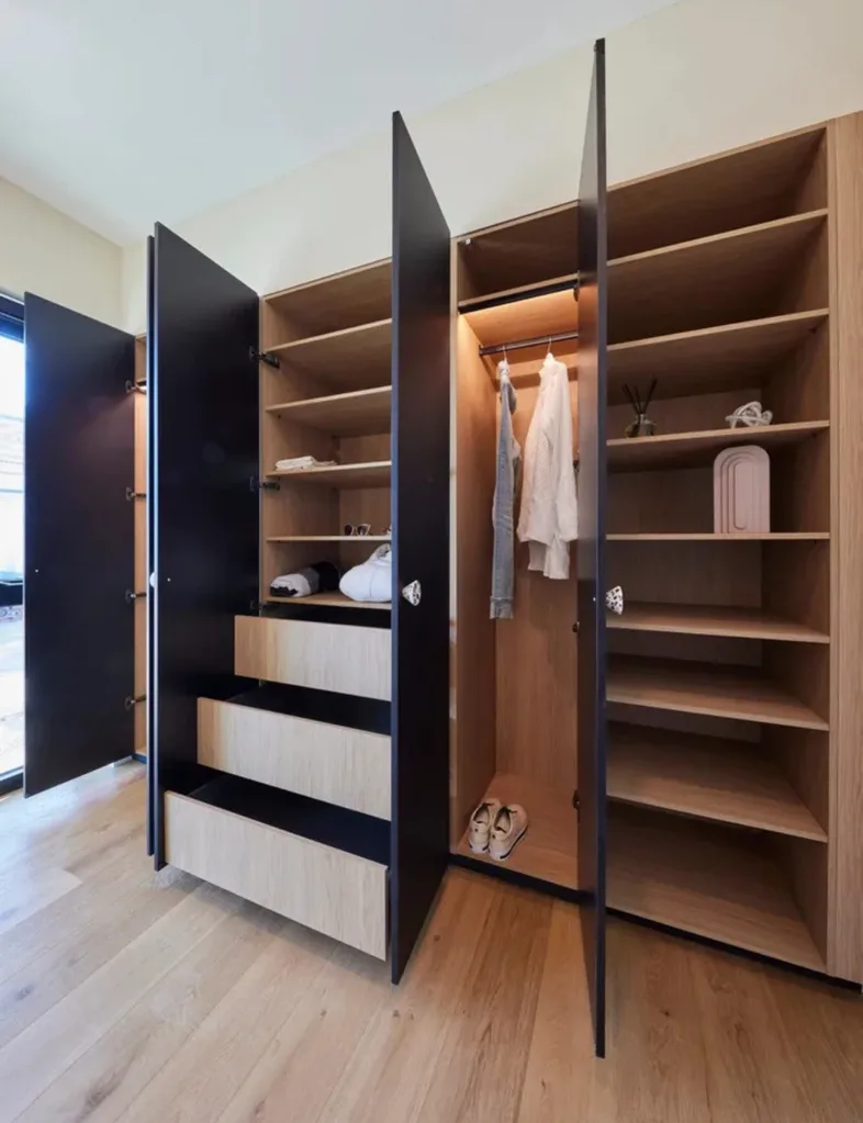 Shaynna said the wardrobe, with its statement world map decal, was the hero of the space while everything else needed to be fixed, pointing out inconsistencies in the wall panelling and colour palette.