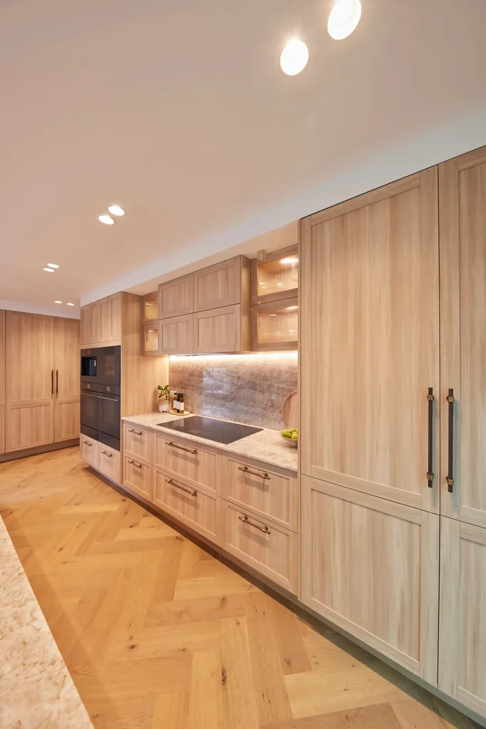 Thankfully for Maddy and Charlotte, Jesse and Paige were also bang on trend, says Senior Designer at Kinsman, Anouk Seers. “Timber-look joinery is very popular at the moment. It feels like a natural fit within Australian homes, it’s inviting, natural, and organic, and suits so many kitchen styles, from coastal to farmhouse.”