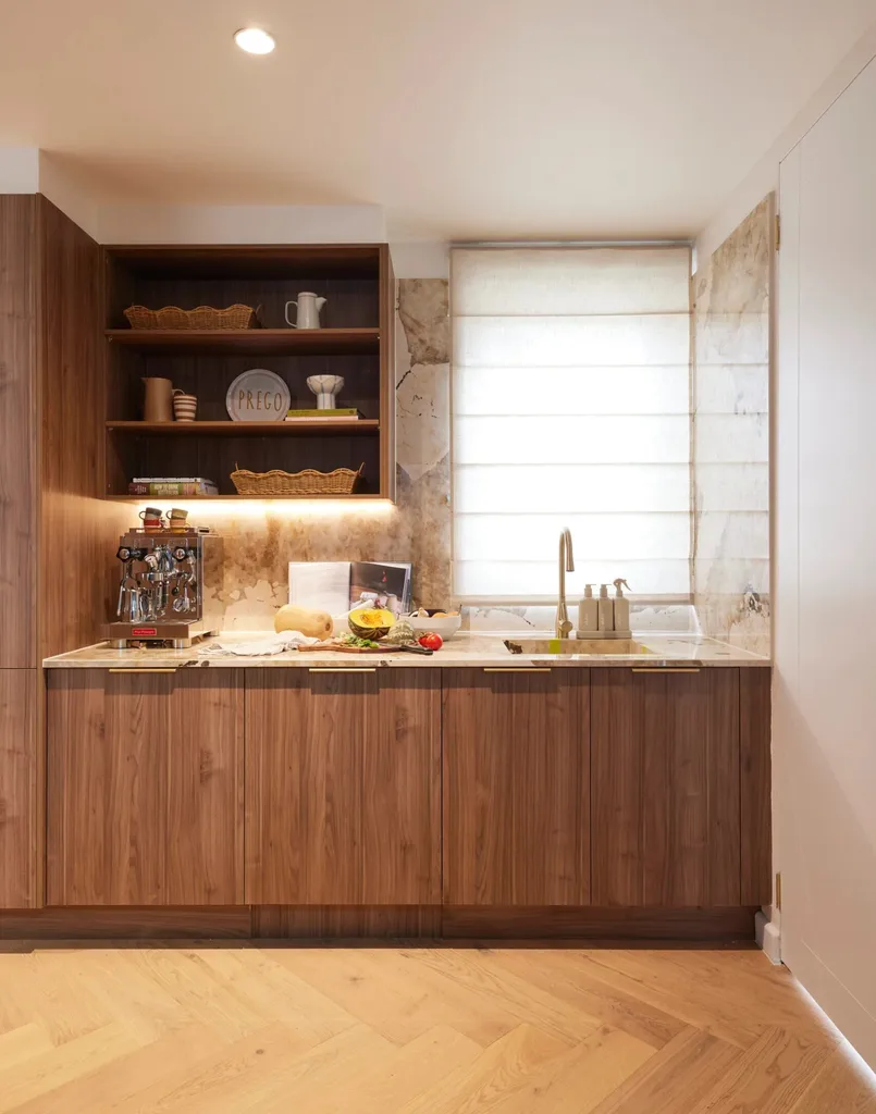 “Yum, yum, yum,” Darren said of the warmth and materiality in the neutral-toned kitchen.