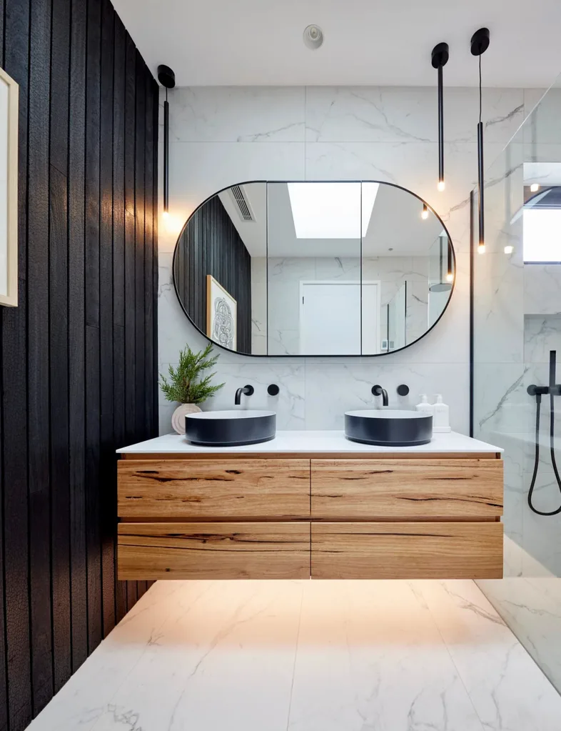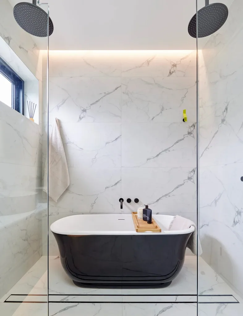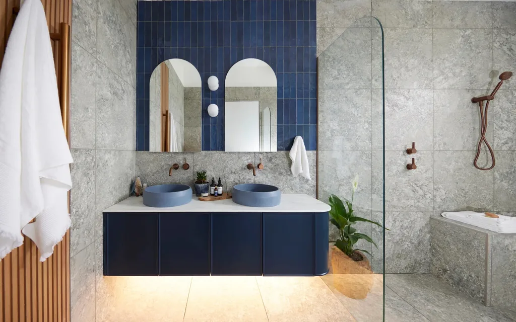 And what’s more, the combination of basin, tile and stone at the vanity, Marty and Darren felt they perfectly encapsulated what Philip Island represents. “It shows you the sand, the earth, the rocks, the trees, everything from Red Rock beach just down the road, that’s a snapshot of it,” said Darren, referring to the colours, textures and materiality. “This is something you would find in a six star hotel anywhere in the world,” commended Marty.