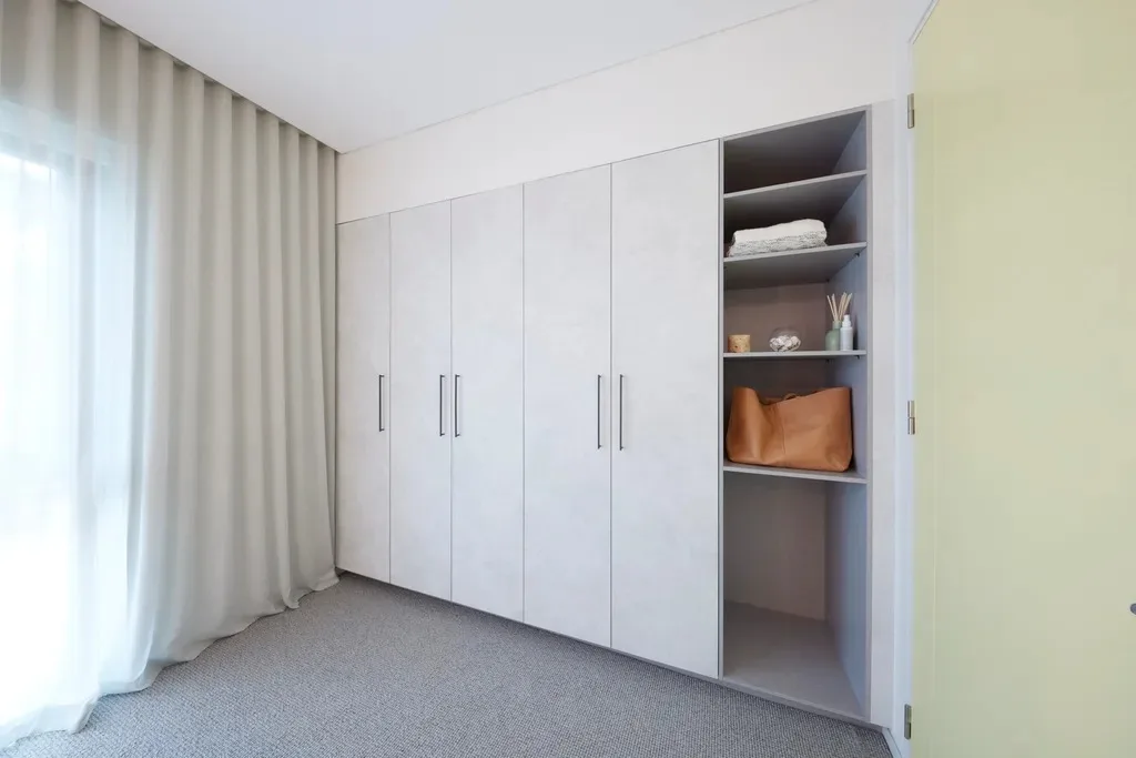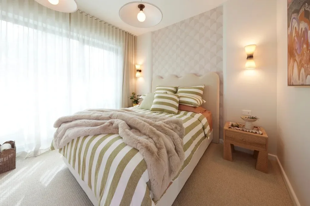 Proving that constraints can lead to the best design choices, Shaynna was a huge fan of the “art-deco and ’50s” colour palette, which was a late-stage compromise after Mimi couldn’t source her preferred beds in white. “I think the colour palette is so sophisticated,” Shaynna said. “I absolutely adore it.”