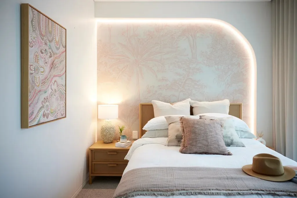 But true to form, these two lovebirds seemed to sail through the week with only a few tough moments, taking home the win for their “magical” kids room. “Please, look how good this is,” Darren said of the creative bedhead feature wall, which combined two white boucle headboards, LED lighting and a custom rainbow decal to create an ‘over the rainbow’ effect. Marty was also in awe of the design, saying he thinks the bedhead will “break the internet”.