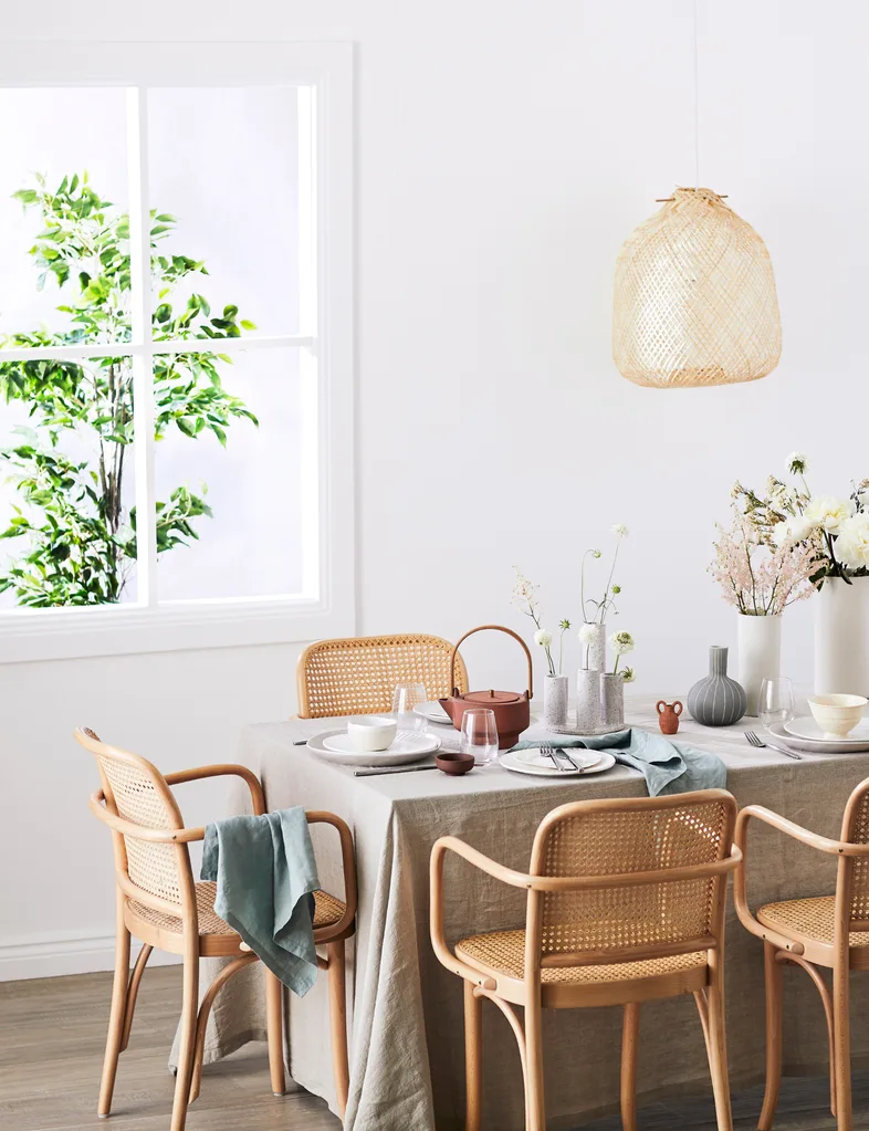 Colour is the quickest, and prettiest, way to gussy up furniture, and spray-paint is the best way to achieve a smooth, even finish on bamboo, cane and rattan. Soft tones can be difficult to find — most manufacturers lean towards a garish palette – but some lovely shades are available. White is always a winner, especially for outdoor pieces, and soft, muted greys, blues and greens are perfect for updating bent cane and bamboo. Add some cosy cushions in muted shades, opting for classic stripes for a ‘summer in the Hamptons’ look or botanical prints to carry though a plantation theme.Black, charcoal grey and deep reds are modern and dramatic and bright shades of lilac, orange and green give a fresh air to modern wicker.