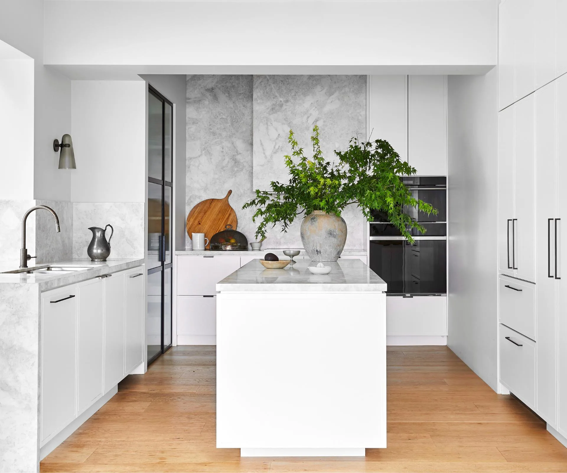 Then there’s the splashback, which she recommends opting for a non-mirrored finish as “they need constant attention because they show every splatter mark.” The same goes for using small tiles in your splashback – “all that grout means way more scrubbing than anyone wants to do.” Her pick? “One single piece of engineered stone like quartz or porcelain, no grout lines, super easy to wipe, and they hide a lot.”