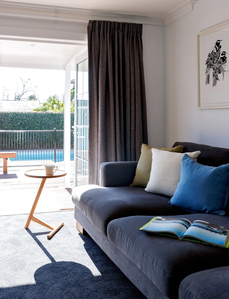 But the renovation hasn’t been a walkover. What started as a hankering for a spare bedroom for visiting whānau blew out to a major makeover, including a new bedroom, ensuite and garage wing, a total kitchen and bathroom overhaul, and transformation of the former garage into a two-bedroom sleepout.