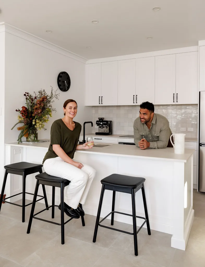 A new butler’s pantry hides the clutter of busy family life, leaving the stone benchtops clear and clean. “We love hosting and feeding people, so having a big new kitchen to do that in has been lovely,” says Liam.
