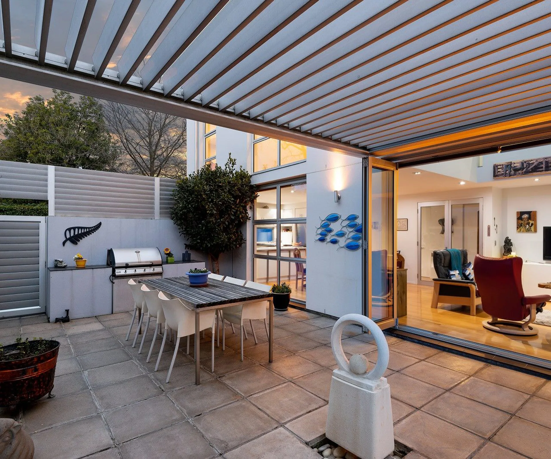 Spacious and drenched in sunlight, this property blends contemporary style with a warm ambience. Situated on a quiet 564sqm site nestled down a private rear driveway, this immaculately presented 295sqm home was designed in 2004 by +MAP architects to maximize light and warmth from the sun with a north-facing aspect. The outdoor space is sheltered by louvres and is fully fenced, providing privacy and a relaxing space to unwind or entertain.