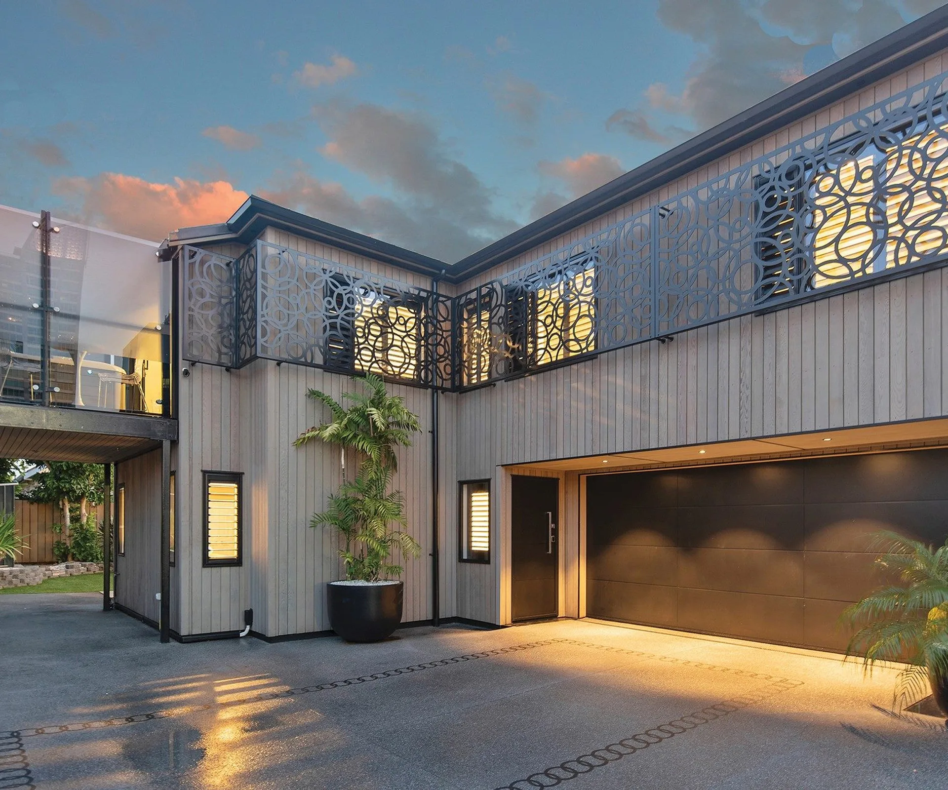 This is a project that’s been designed for aesthetics as much as function, with striking aluminium detail and light, vertical cedar weatherboard creating a dramatic exterior impact. The gated carport fits two cars or a boat, which is in addition to the internally-accessed double garage.