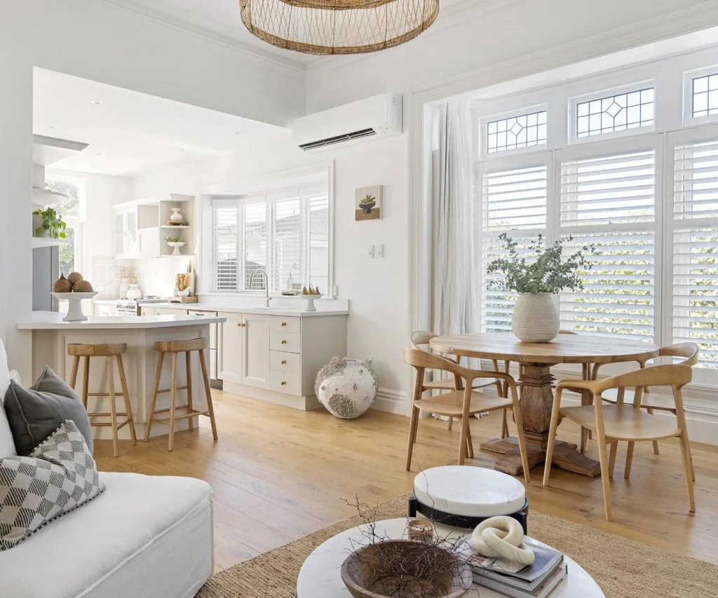 You’ll fall in love with the quintessential villa details. Ceiling roses, led lights, and bay windows give it that heritage charm, while white shutters and linen window furnishings lend to a modern aesthetic, enhanced by a timeless colour palette.