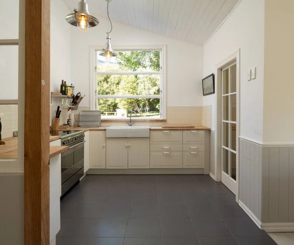 Surrounded by lush, landscaped gardens, an orchard and mature native trees on 15,900 m2 of land, you’ll have plenty of time to explore your own backyard during your time spent here. Inside the villa, three bedrooms, two bathrooms, a formal dining room, lounge and kitchen all are entered off the main hallway which runs through the home.