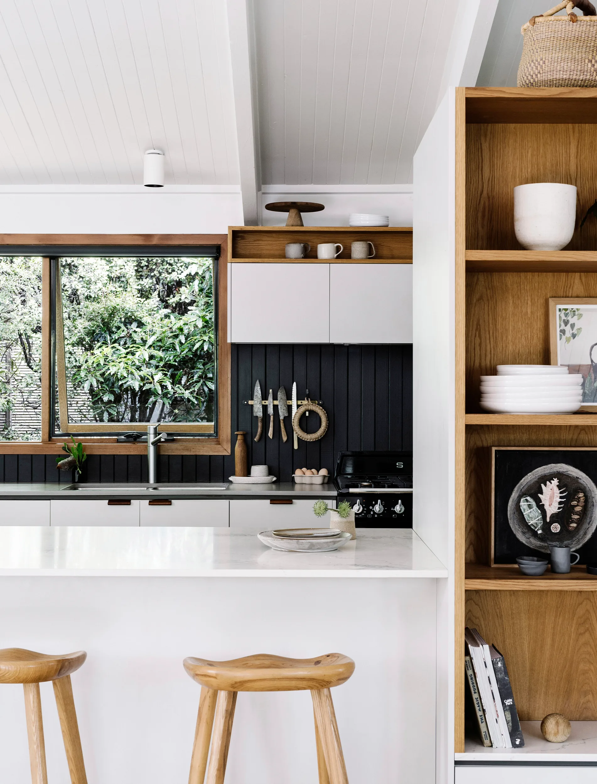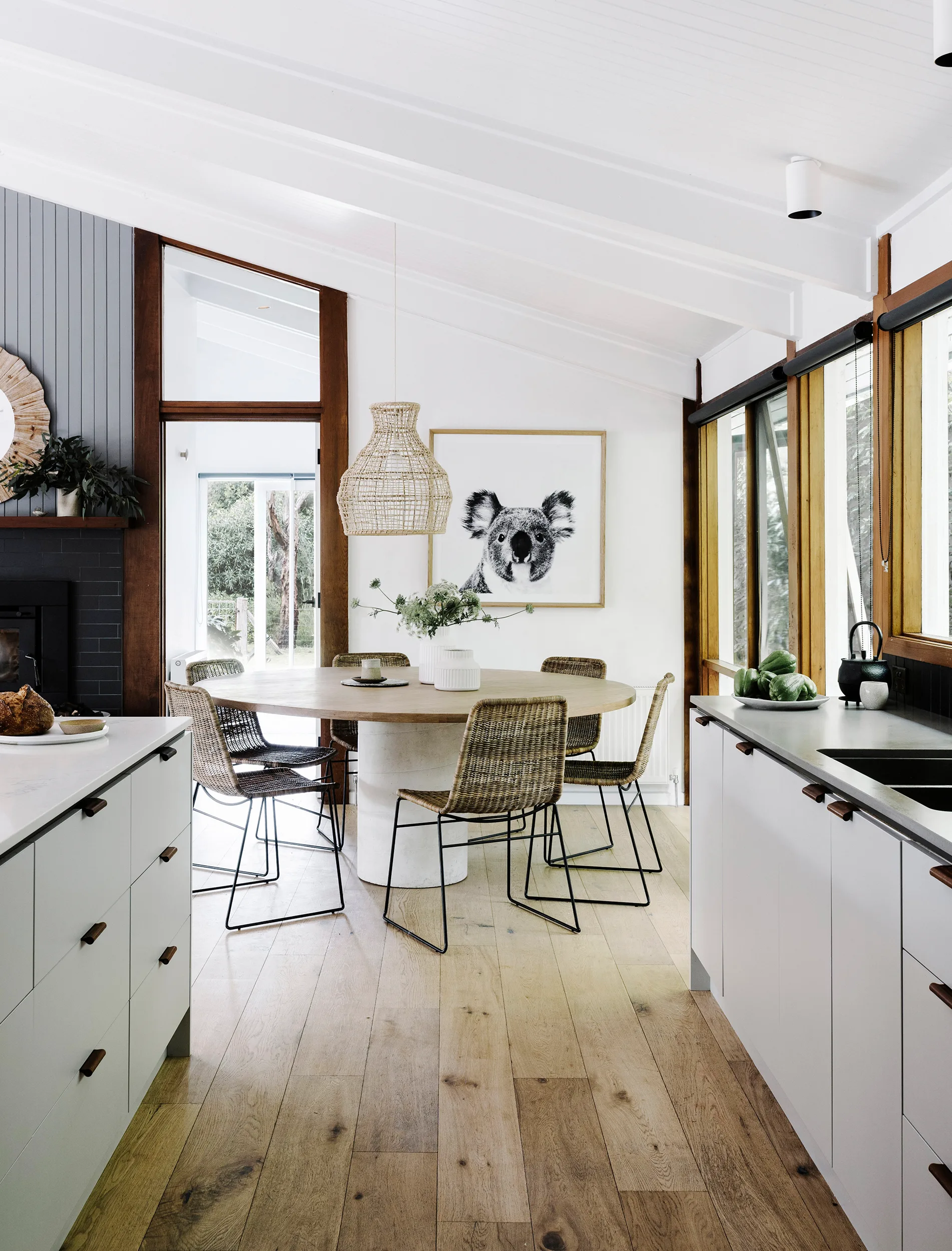 “The kids are always outside, running around in the bush,” says Jayne. “There’s a creek at the back of the house, and my children are always making cubbyhouses and hanging out with friends there. And Darren and I spend a lot of time around the fire pit, cooking with friends.”