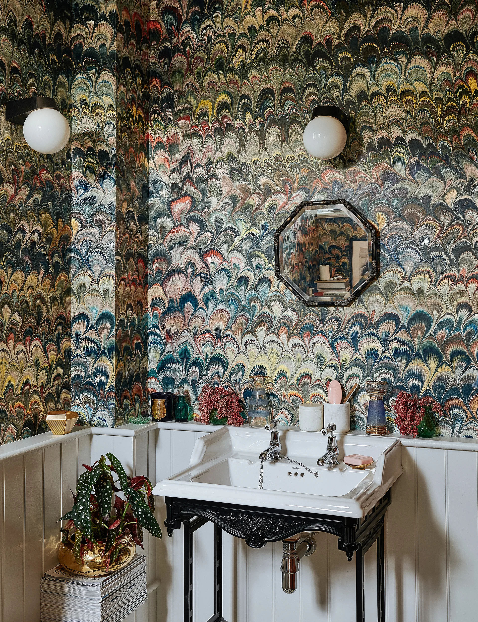 Favourite wallpapers came from brands such as House of Hackney, Svenskt Tenn, Cole & Son and Swedish interior designer Beata Heuman, which she complemented with vibrant paint shades. Furniture was sourced from brands such as Ligne Roset and Hay, as well as local vintage shops and auction sites. “It’s a bit of a mix of everything,” says Emily. “When you’re on a creative journey, things start to find you.”
