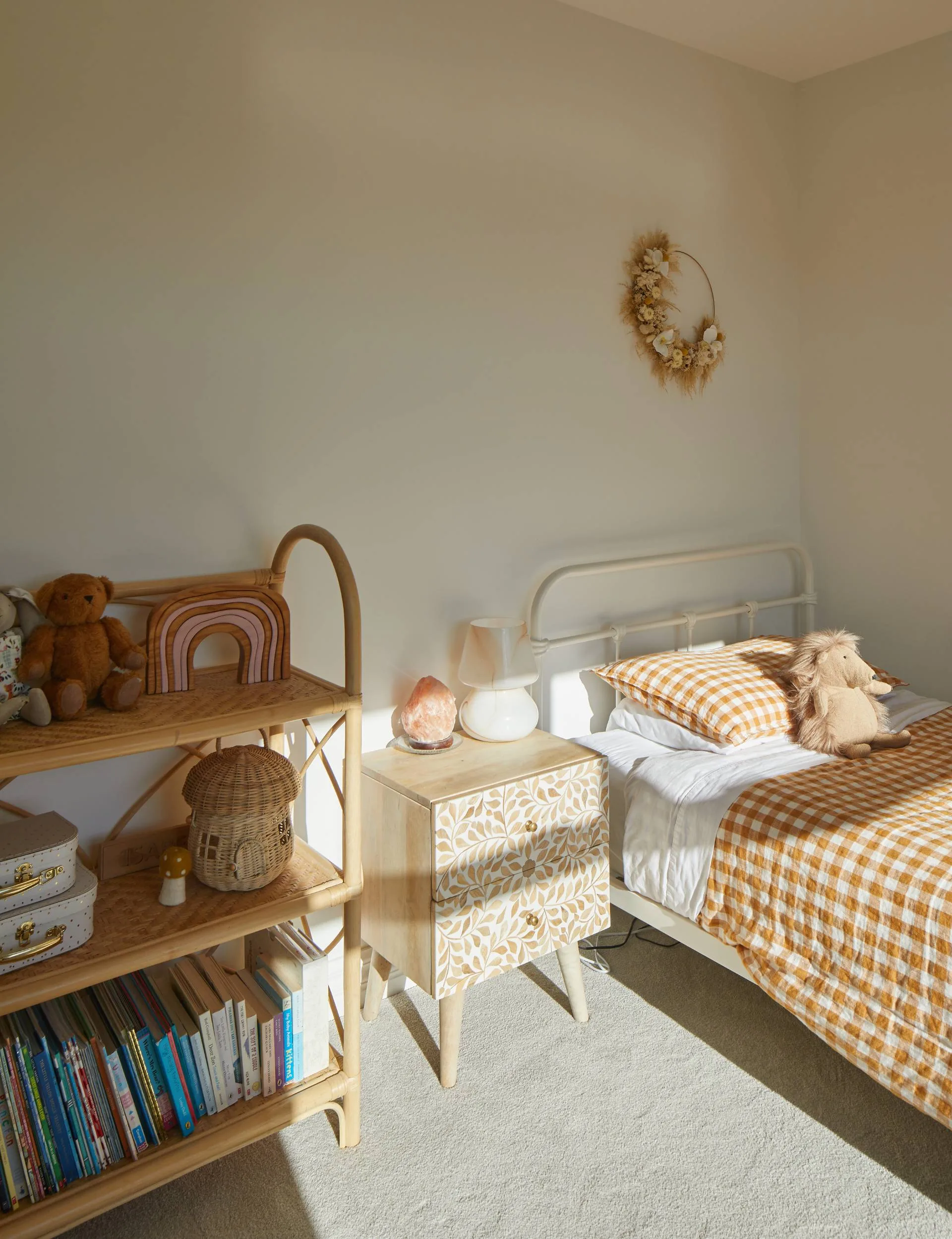 “I love bargain buys of quality vintage. I prefer to avoid purchasing furnishings from cheap retailers, where I can – as tempting as it can be. It just won’t last and will eventually end up in a landfill, so if the budget is tight, I will purchase secondhand. Apart from our coffee table from Bohzali and our art deco swivel chair, not much else is very high-end, as I was concerned about buying expensive pieces when we have young children.”