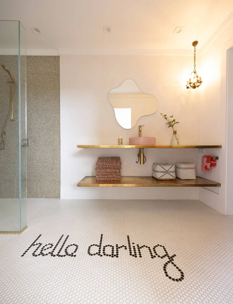 Finding specialist tradespeople who could share and realise their vision was a complicated process. It was worth it in the end. Finding a tiler who wasn’t phased by Clare’s request to write words in mosaic tiles, for example. Or the clever plasterer, who created a distressed effect on the walls to give the new-build a sense of history.