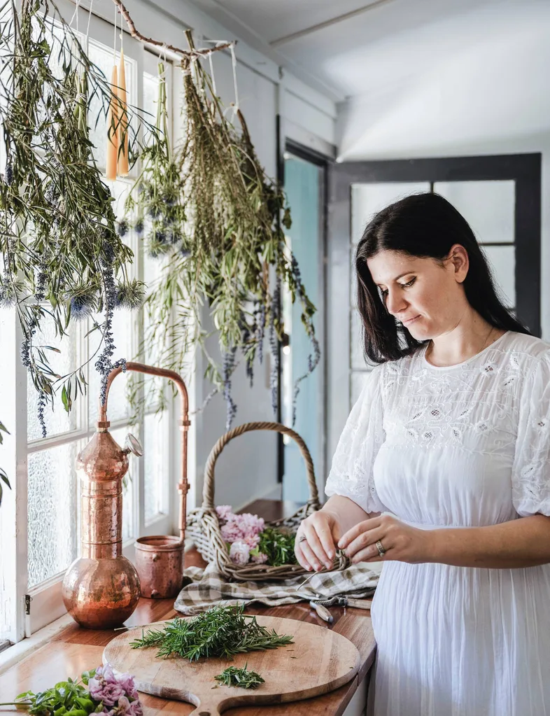 Lucy and her husband Sebastian, a chef, live in the cottagecore home with their daughter Birdie and son Bleu, as well as Rosie the Maltese cross, Persephone, a rescue cat, and a brood of chooks out the back.
