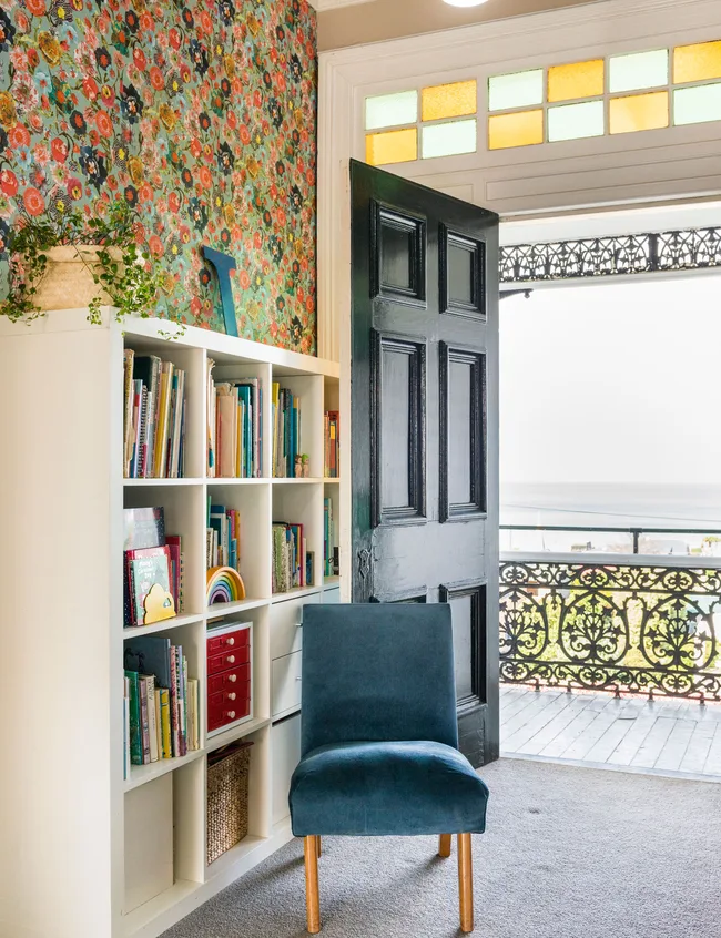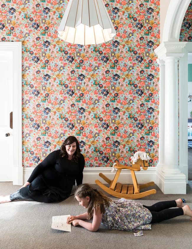 Try it: Give an upstairs landing a personality of its own with vibrant wallpaper. The origami flowers on this Oilily design look three- dimensional up close.