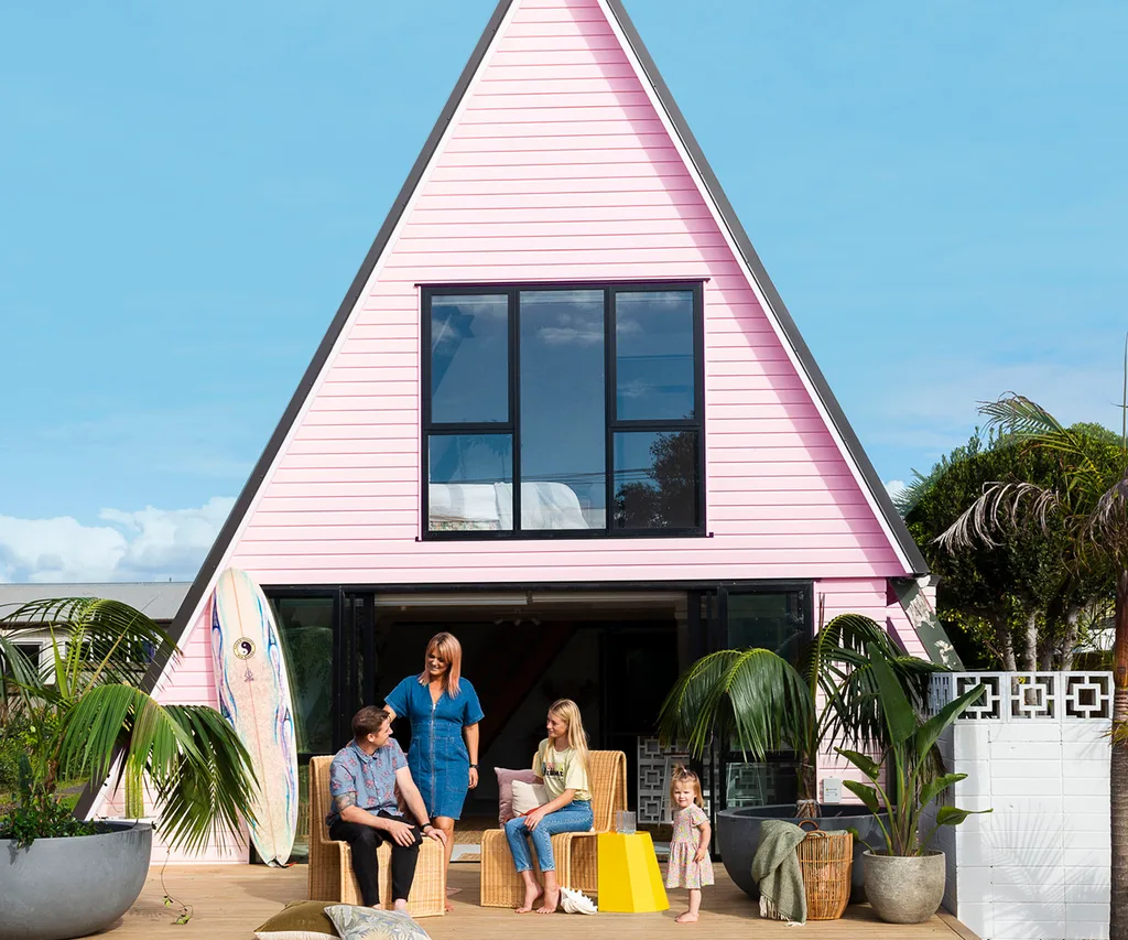 A dated A-frame right on Papamoa Beach was the perfect project for this creative couple, who have transformed it into a nostalgic holiday retreat.