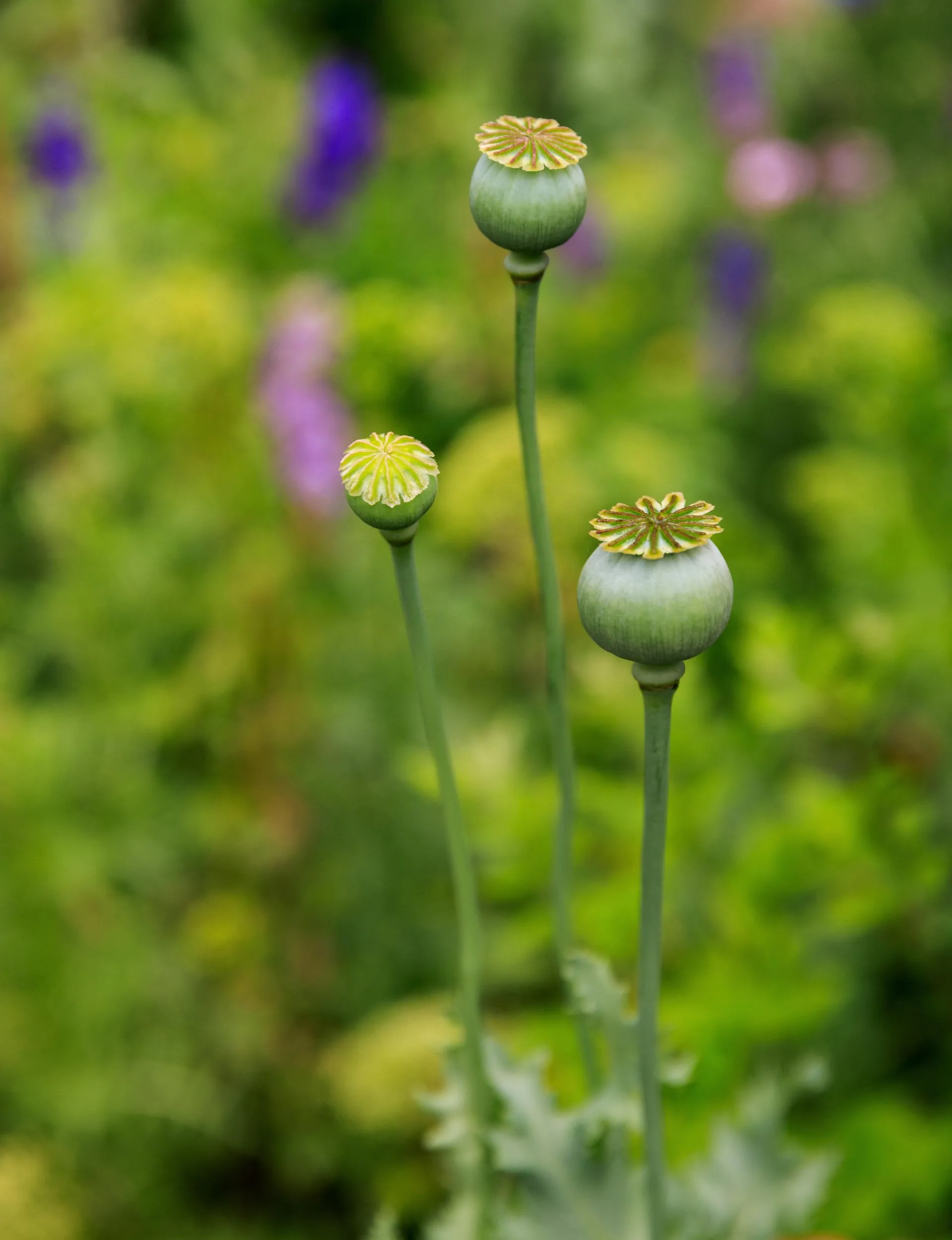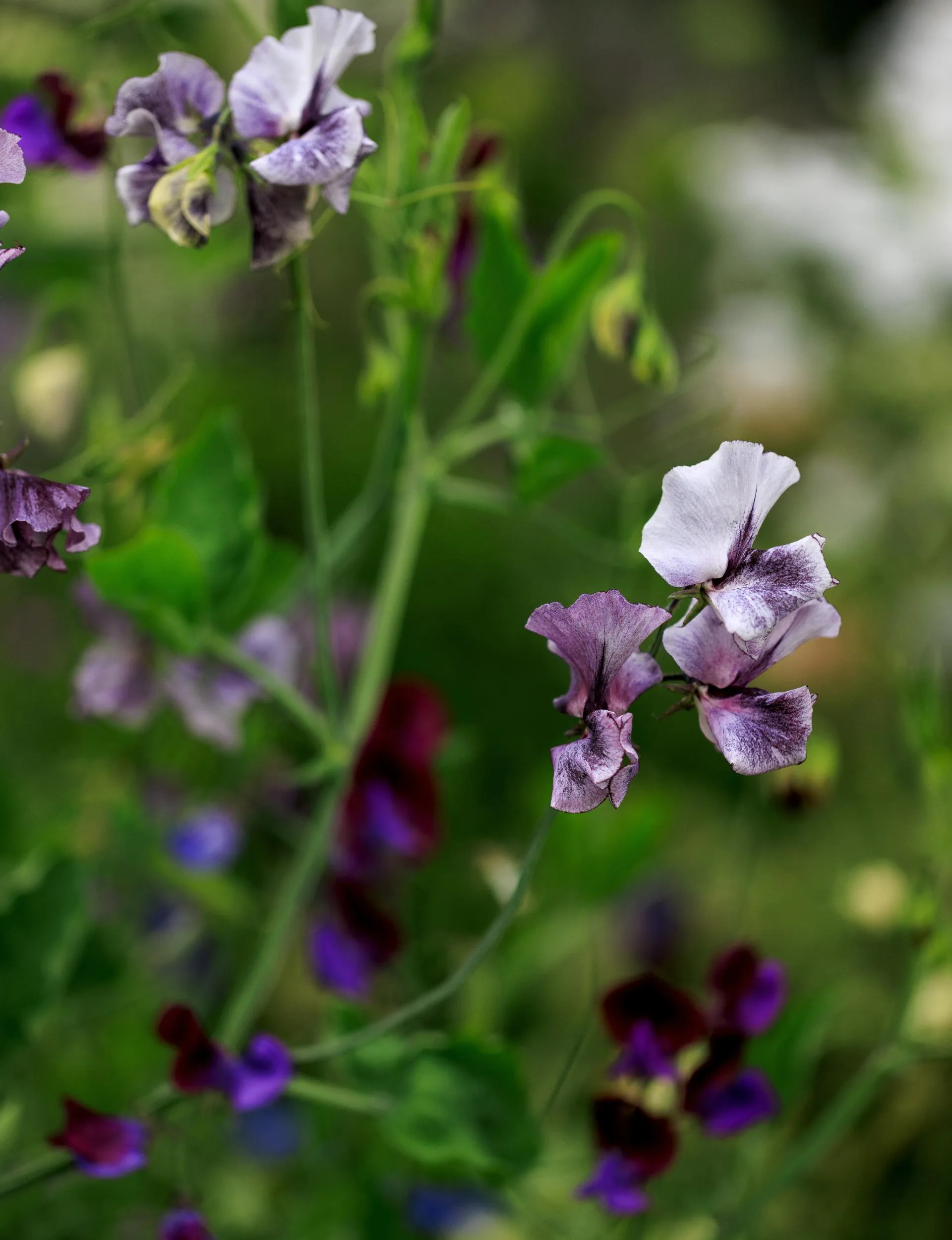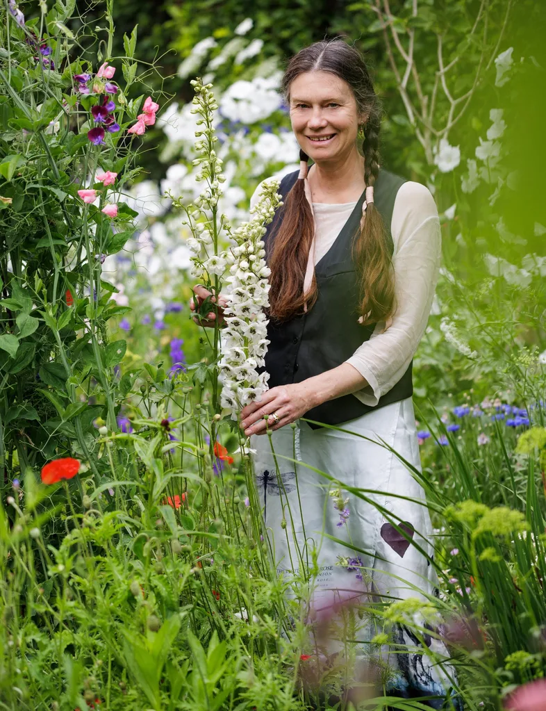 There are obelisks of trailing sweet peas, scarlet poppies vibrating with bumblebees, inky purple scabiosa with conical pincushion-like flowers and wispy grasses.